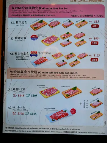 新開業加上是筲箕灣第一間Sabusabu當然要試下我們星期日約11:40到達,當然是無咩人啦,不用等位店員好好問我想座什麼位置Storellet會員有一份魚滑或蝦滑送午市90分鐘放題我們選了最平那款有牛肉的放題-美國特選級穀飼牛肉,可享用豚肉及雞肉,和hotpot buffet bar items $148假日+$10+10%服務費湯底是一枱一個大鍋,不是一人一鍋,可選:昆布清湯,干貝清湯,木瓜海底椰魚湯,黑蒜油雞白湯,姬松茸地雞湯,中華麻辣湯,蕃茄豚骨湯,壽喜燒,季節限定湯底混合湯底+$20我們選了季節限定湯底-喇沙,不辣的,好味hotpot buffet bar 有菜,丸,響鈴,炸魚皮,麵食,醬料多選擇,醬油也有幾款飲品有咖啡機,茶包,紙包或罐裝飲品,多選舉,我很喜歡不是汽水機乳酪有原味和士多啤梨味,可加配料,芒果爆珠幾好味Sabusabu當然要講主角牛肉,同一款牛肉拿出來有下面2碟不同的樣貌,牛味不算重,薄薄一片也算不錯豚肉和雞肉也不錯,有肉味,雞肉滑有日本葛絲和蕎麥麵這些平日不常見的放題麵食店員服務態度好好,不停主動收拾,自動加湯,餐廳沿用之前餐廳的裝修依然新淨,食物也不錯…查看更多