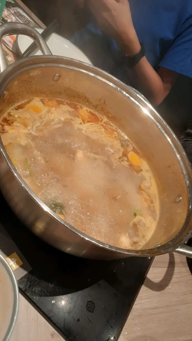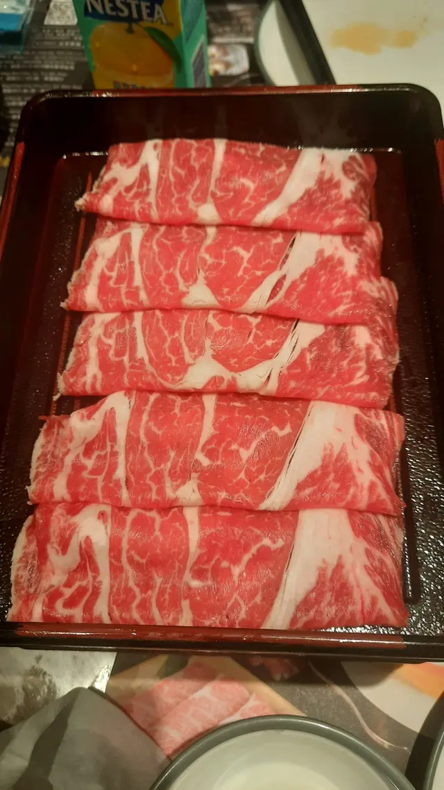 新開業加上是筲箕灣第一間Sabusabu當然要試下我們星期日約11:40到達,當然是無咩人啦,不用等位店員好好問我想座什麼位置Storellet會員有一份魚滑或蝦滑送午市90分鐘放題我們選了最平那款有牛肉的放題-美國特選級穀飼牛肉,可享用豚肉及雞肉,和hotpot buffet bar items $148假日+$10+10%服務費湯底是一枱一個大鍋,不是一人一鍋,可選:昆布清湯,干貝清湯,木瓜海底椰魚湯,黑蒜油雞白湯,姬松茸地雞湯,中華麻辣湯,蕃茄豚骨湯,壽喜燒,季節限定湯底混合湯底+$20我們選了季節限定湯底-喇沙,不辣的,好味hotpot buffet bar 有菜,丸,響鈴,炸魚皮,麵食,醬料多選擇,醬油也有幾款飲品有咖啡機,茶包,紙包或罐裝飲品,多選舉,我很喜歡不是汽水機乳酪有原味和士多啤梨味,可加配料,芒果爆珠幾好味Sabusabu當然要講主角牛肉,同一款牛肉拿出來有下面2碟不同的樣貌,牛味不算重,薄薄一片也算不錯豚肉和雞肉也不錯,有肉味,雞肉滑有日本葛絲和蕎麥麵這些平日不常見的放題麵食店員服務態度好好,不停主動收拾,自動加湯,餐廳沿用之前餐廳的裝修依然新淨,食物也不錯…查看更多