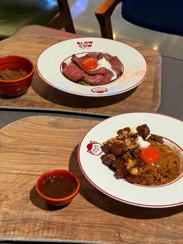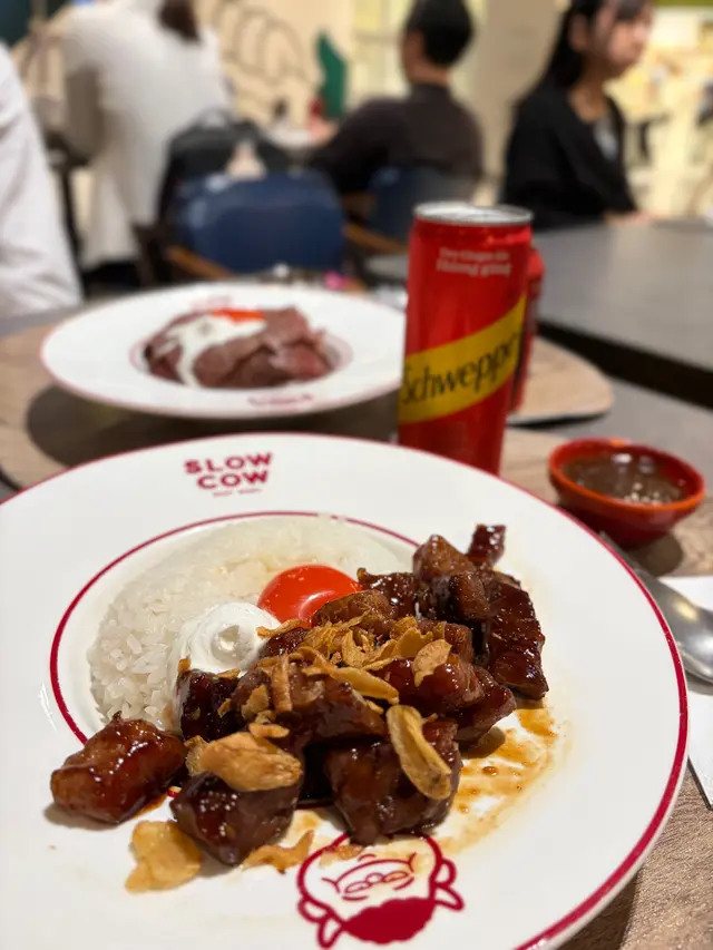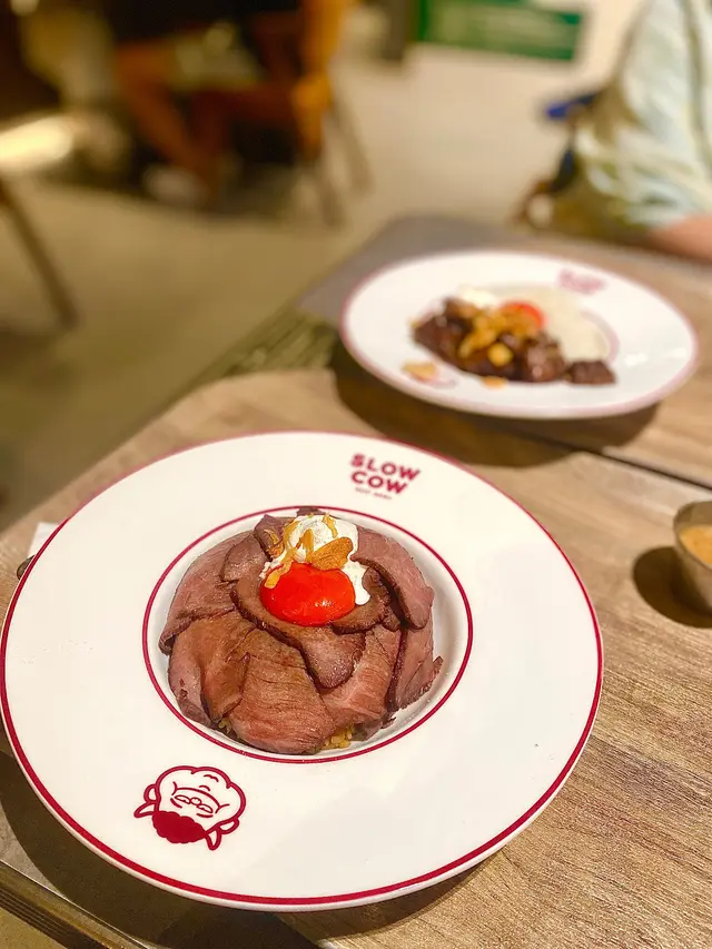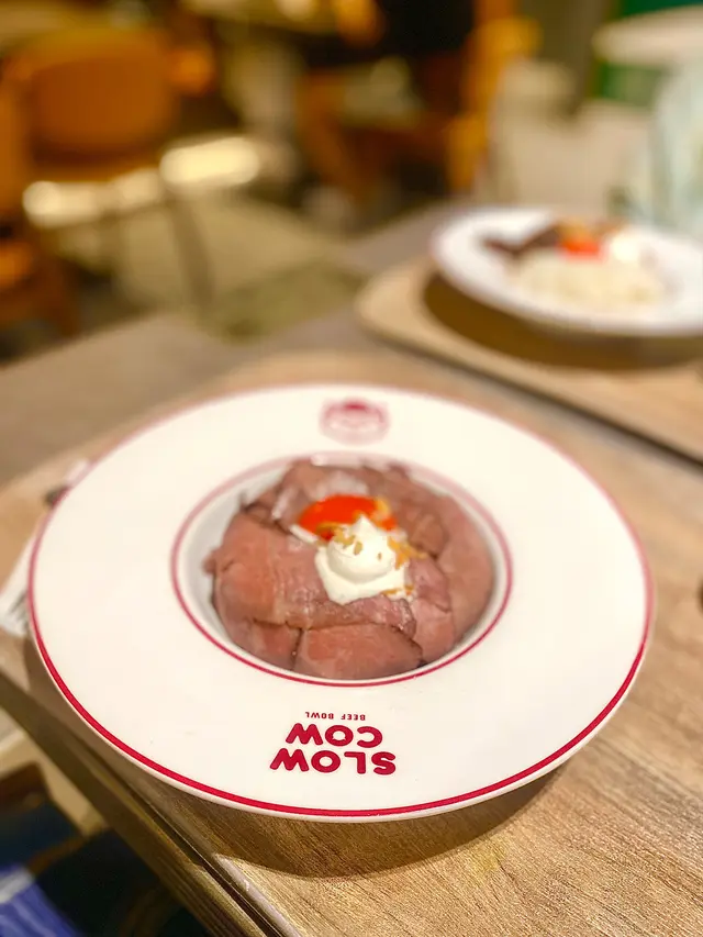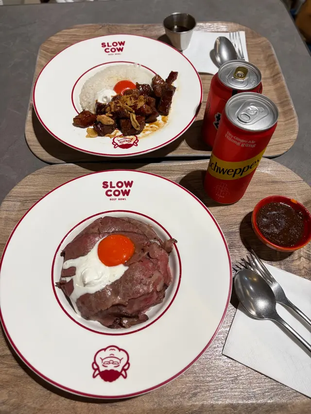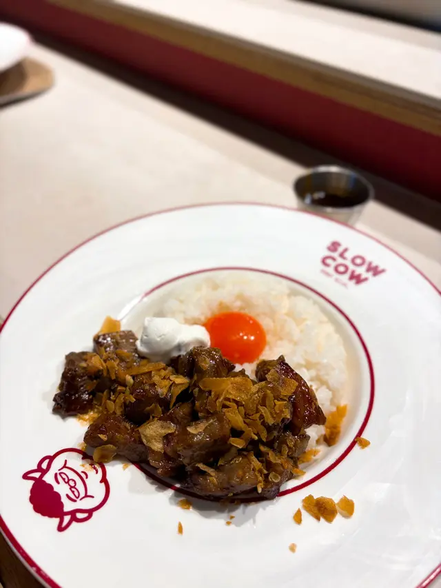 之前食過尖沙咀分店,今次過嚟銅鑼灣試吓😙因為呢度都係以food court形式,不過位置都坐得舒服~我同朋友叫咗A4 日本和牛丼 同 慢煮熟食牛肉(大盛)加蘭王生雞蛋黃~😝兩款都有驚喜!先講 A4 日本和牛丼$168和牛一上枱,賣相已經好吸引,有蒜片同埋粒粒和牛粒配上日本珍珠米同招牌蘭王蛋😋食落口,牛肉粒外面脆,入口即化,肉味濃郁,帶點甜,充滿油脂感,配埋咖喱蛋黃醬(+$8)(我哋揀咗呢個醬),超級惹味!雖然醬汁有啲搶味,但係都有另一種風味~加蛋有得加醬汁又得,多種食法🤪慢煮熟食牛丼$88可以自己選擇份量,叫咗大盛(90g)(+$28)加埋粒必加既蘭王蛋🍳(+$6)牛肉用咗 21 日熟成再慢煮,120g 份量好足,肉片切得薄薄,顏色粉紅,望落已經好 juicy。配日本蘭王生雞蛋黃,仲有自家製忌廉,攪拌起來口感濕潤又滑溜,超滿足!🥰牛肉好嫩,入口有濃濃嘅肉香,蛋黃一爆開仲增添咗份 creaminess,jeng😋而且醬汁都係大大碗,秘製熟成牛辣肉醬(+$12),超級多肉嚟撈飯🤣飲品依舊係我哋喜歡嘅可口可樂🥤(+$12)😆唯一小瑕疵係晚市高峰期可能要等一陣,建議早少少去~而家又多咗啲醬汁,唔同嘅米飯份量選擇,可以根據自己喜好,想食高質牛丼嘅朋友,slowcow真係值得一試😎…查看更多