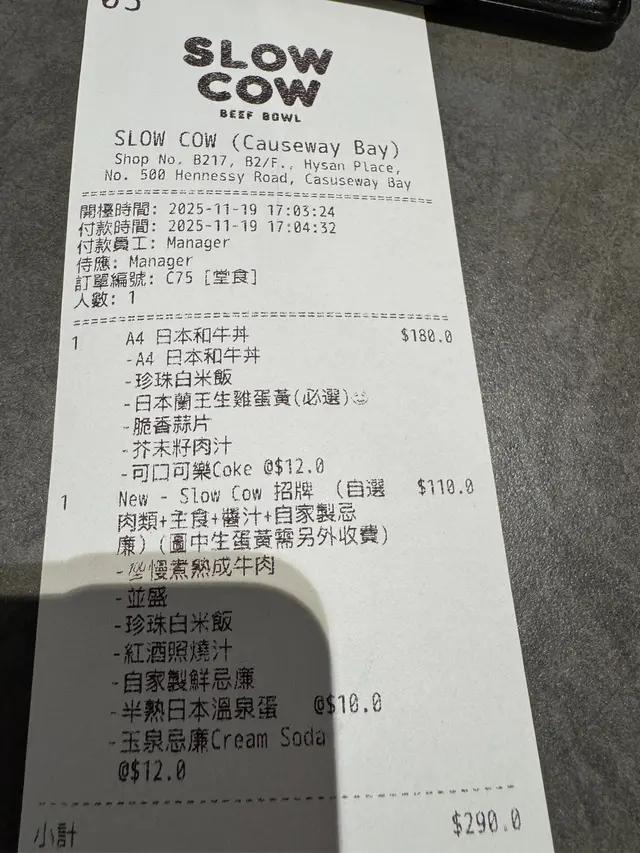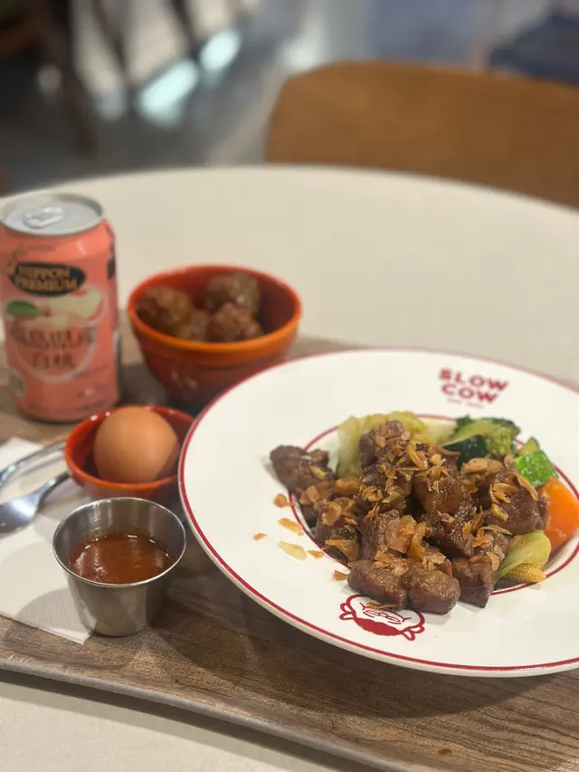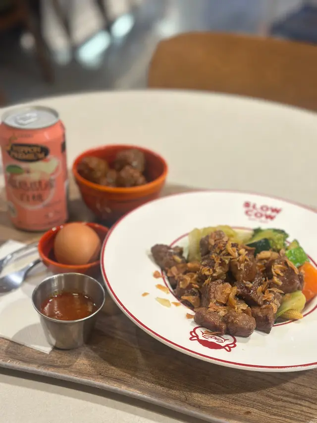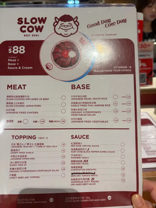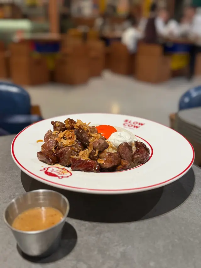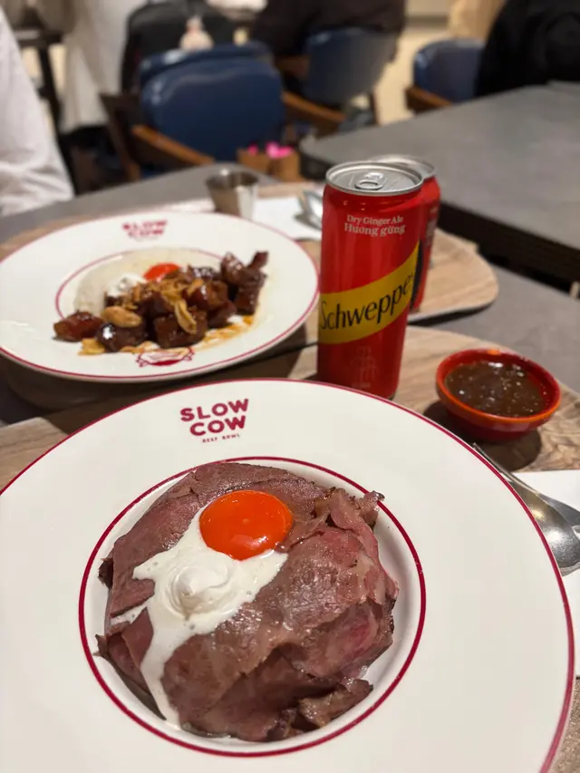 之前食過尖沙咀分店,今次過嚟銅鑼灣試吓😙因為呢度都係以food court形式,不過位置都坐得舒服~我同朋友叫咗A4 日本和牛丼 同 慢煮熟食牛肉(大盛)加蘭王生雞蛋黃~😝兩款都有驚喜!先講 A4 日本和牛丼$168和牛一上枱,賣相已經好吸引,有蒜片同埋粒粒和牛粒配上日本珍珠米同招牌蘭王蛋😋食落口,牛肉粒外面脆,入口即化,肉味濃郁,帶點甜,充滿油脂感,配埋咖喱蛋黃醬(+$8)(我哋揀咗呢個醬),超級惹味!雖然醬汁有啲搶味,但係都有另一種風味~加蛋有得加醬汁又得,多種食法🤪慢煮熟食牛丼$88可以自己選擇份量,叫咗大盛(90g)(+$28)加埋粒必加既蘭王蛋🍳(+$6)牛肉用咗 21 日熟成再慢煮,120g 份量好足,肉片切得薄薄,顏色粉紅,望落已經好 juicy。配日本蘭王生雞蛋黃,仲有自家製忌廉,攪拌起來口感濕潤又滑溜,超滿足!🥰牛肉好嫩,入口有濃濃嘅肉香,蛋黃一爆開仲增添咗份 creaminess,jeng😋而且醬汁都係大大碗,秘製熟成牛辣肉醬(+$12),超級多肉嚟撈飯🤣飲品依舊係我哋喜歡嘅可口可樂🥤(+$12)😆唯一小瑕疵係晚市高峰期可能要等一陣,建議早少少去~而家又多咗啲醬汁,唔同嘅米飯份量選擇,可以根據自己喜好,想食高質牛丼嘅朋友,slowcow真係值得一試😎…查看更多