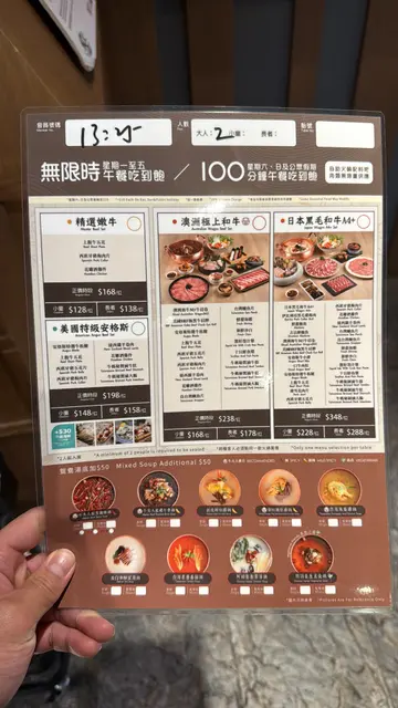 最近我同朋友去咗尖沙咀的牛大人台灣火鍋吃到飽慶祝生日。地點在加拿大廣場2樓,環境都幾舒適,適合聚餐。我哋揀咗198元的套餐,可以食100分鐘,真係好划算!套餐入面有台式小食,味道非常出色。特別係牛肉,質感非常嫩滑,簡直令人回味無窮!我哋仲可以自選火鍋底,湯底有幾款選擇,令整個火鍋更加豐富。服務方面,店員態度都幾好,幫我哋介紹菜式,還時不時過來檢查我哋需要咩。雖然食咗一段時間,但感覺唔會悶,因為可以不斷換不同的食材,真係食到滿足!總體來講,牛大人真係一個適合慶祝同聚餐的好地方,食材新鮮又美味,下次一定會再來!…查看更多