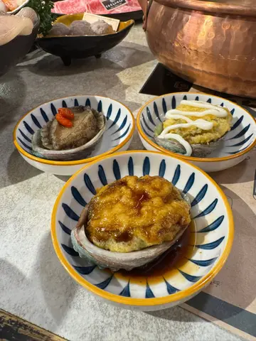 朋友知我大食帶我去食牛大人最新日本黑毛A4和牛套餐,全部上得好快超開始好豐富,果然真食到超飽😆日本黑毛和牛送M9和牛牛丸和海鮮拼盤大大碟,有生蠔鮑魚鱔片,生蠔熟咗都依然好大只脹卜卜鮮甜☺️估唔到牛丸真有傳說中彈彈牛丸感覺,我哋掛住傾計完全忘記湯內和牛,隔了幾分鐘都依然嫩滑無比,牛脂肪分布均勻,入口即溶肥而不膩,牛香味十足🤩*伊比利亞黑毛豬梅肉* 肉質細嫩多汁,味道豐富,口感層次鮮明。 即叫期間限定經典鴛鴦鍋(聰明魷魚沙茶鍋+養生菇菌燉雞鍋)茶鍋香濃帶鮮,搭配養生菇菌燉雞鍋大半只雞在湯內,味道層次豐富,2款既有濃郁也有清淡,食得好自在。 驚喜嘅多款特色鮑魚料理(美乃滋鮑魚酥、柚子燒汁鮑魚、古法醉鮑魚)有多款創新做法,美乃滋鮑魚酥外脆內嫩,柚子燒汁帶清香果味,古法醉鮑魚醉得入味又保留鮮甜。吸引到我仲有懷舊系列菜式-*和牛橘梨豆腐*酸甜配合得好,相當開胃🤤*蝦蝦霸霸脆多士*香脆彈牙而不油膩👏*阿嬤豆乾魚蓉面*感覺好地道,又帶住濃濃嘅傳統風味,仲有豆乾好滋味,魚蓉炒麵味道滿足!而且份量啱啱好好有心思。*烏金墨汁手作腸*香濃又創意,墨魚🦑彈牙。其他仲有三和夜市雞皮卷、海苔鹽酥雞、夜市撈脆薯等懷舊味道同新潮做法結合。 特色甜品芒檸蜜西米爽清新又解膩,蜜桃愛玉冰同伏特加特調嘅港式檸檬茶18+,有果香又有酒香,非常配搭。還有好多台灣直送的蔬菜都好新鮮,餐廳調味醬料非常廣泛。走時候服務員叔叔溫馨提示我食雪糕,我哋九秒九去拿,飽都要食🤣…Read More