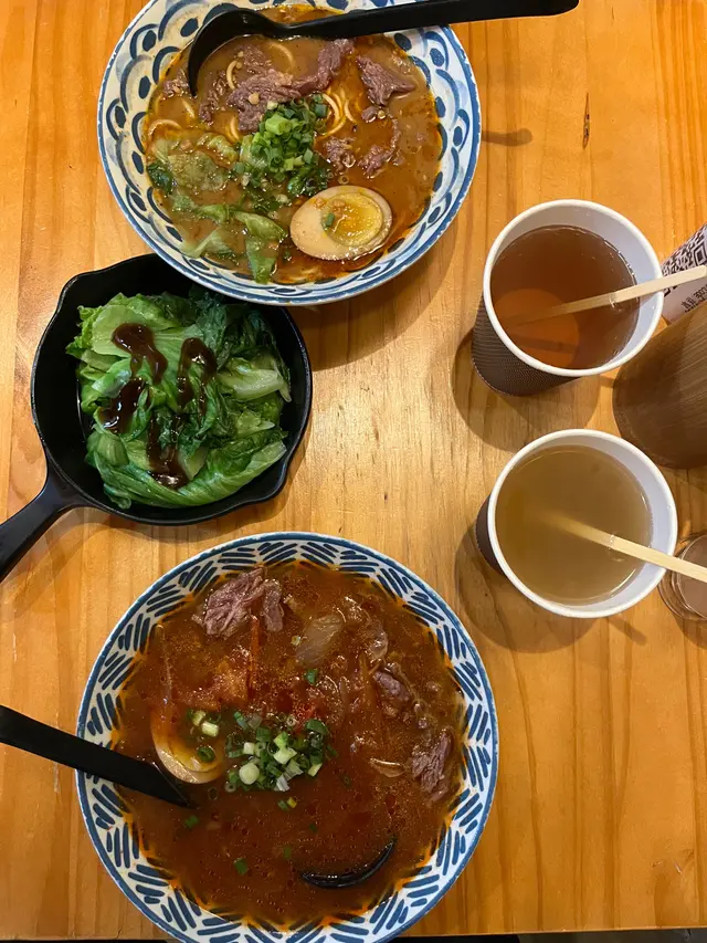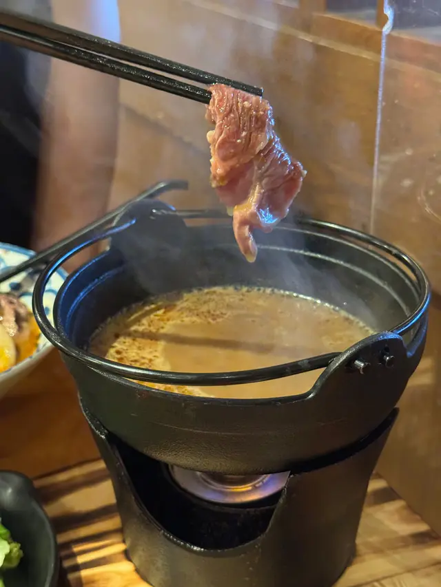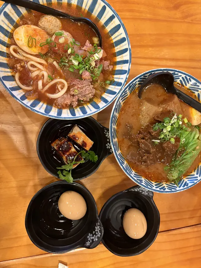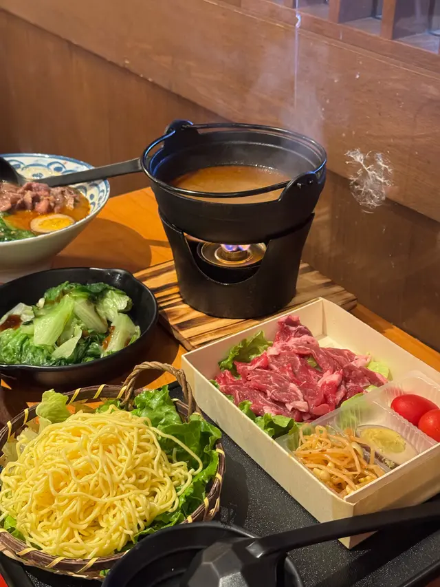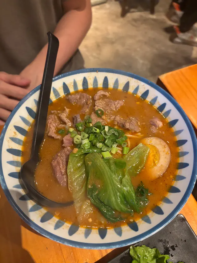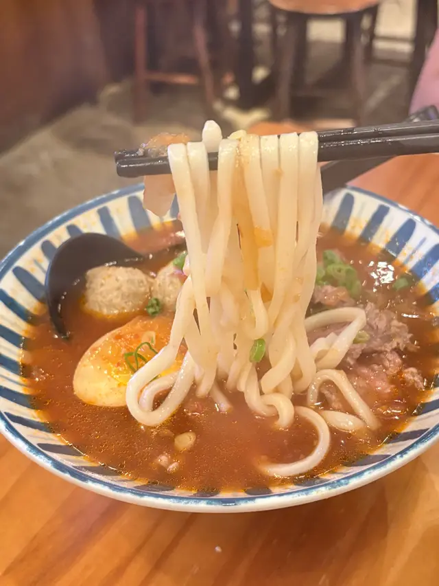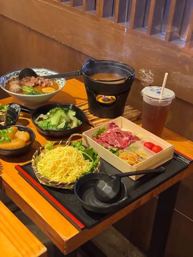 作為一名沙嗲控,每次聞到濃郁花生香氣就忍不住尋找源頭!今日嚟到呢間隱藏於尖沙咀的小店,正是為了可試試那碗可以自己涮牛肉的沙嗲沾麵。小店空間雖不大,但環境乾淨溫馨,服務態度親切,絕對係值得支持。手工沙嗲手切牛肉沾麵(火鍋) $68呢個餐係必點之選,最大賣點是可以親手涮牛肉!店家採用本地潮汕黃牛的牛頸脊,手切厚度恰到好處,油花分布均匀。將牛肉片放入滾熱的沙嗲湯中輕輕涮8秒,肉色由紅轉粉即可撈起入口,確實鮮嫩多汁。沙嗲湯底越煮越濃,更有花生碎增添口感,湯汁可掛在麵條上,完美演繹沾麵精髓。麻辣蔥油肥牛拌台灣幼麵 $65喜歡乾拌麵的食客可選,蔥油香氣突出,與麻辣醬汁平衡得宜,不過幼麵口感稍軟,麻辣度較溫和,嗜辣者可能需要額外添加辣醬。肥牛片軟嫩,整體調味清爽不膩。跟餐更可加多款小食:麻辣美國肥牛片 $30 醬汁濃郁,牛肉肥瘦適中,辣度輕微,屬入門級麻辣風味;炸花枝丸(4粒)$20 外皮薄脆,內裡彈牙且魷魚粒清晰可見,誠意十足;涼拌台灣百頁豆腐 $9 清爽開胃,醬油辣椒調配平衡;風沙雞翼(2隻)$14 炸蒜酥香惹味,炸功控制得宜,食落非常香口;麻辣貓耳朵 $9 麻香突出,口感爽彈,值得一試!飲品推薦清甜解渴的冬瓜茶($7)或不加糖的白桃烏龍($5),正好平衡濃味主食。…查看更多