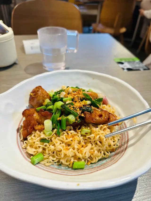 雞塊蔥油撈面是一道讓人回味無窮的美食。雞塊外焦內嫩,肉質鮮美,散髮著香氣,讓人一口接一口。撈面煮至剛好,彈牙又滑順,與雞塊的口感形成絕妙對比。淋上醇厚的蔥油,香味四溢,讓整道菜更添風味。每一根麵條都吸收了蔥油的精華,讓人忍不住多吃幾口。再加上一些香脆的蔥花,增添了清新的口感,讓這道菜更加立體。忙碌的午餐中,雞塊蔥油撈面都是完美的選擇,讓人享受到家的溫暖與滿足。這道菜不僅味道出色,還充滿了情感,讓人每次品嘗都徬佛回到了那個熟悉的地方。是年輕的感覺呀!…查看更多
