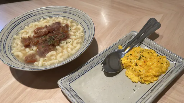 這間茶記在澳牛旁邊,我之所以嘗試光顧,都係因為之前見到同事食嘅蛋治早餐,個賣相非常吸引。 你冇睇錯,只不過係一個蛋治早餐,就可以吸引到我嚟。 呢部份細緻位唔講啦,講返我本人今次用餐體驗。平日下午茶時間,人流較其他茶記少。但佢裝修雅致,環境乾淨,已令我覺得唔錯。 (後來問吓啲夥計,先知原來佢哋已經開咗一年多,仍然keep得咁乾淨,真係好好)我同朋友叫咗兩個常餐。 我嘅叉燒通粉,加奶茶。 朋友叫嘅係沙嗲牛米粉,凍零茶。兩個常餐都正正常常的好味。义燒不硬。容易咬。通粉亦都唔會太腍。朋友叫了炒旦。炒旦真的值得一讚。因為做得好有傳統味道嘅感覺。 另外多士都做得非常好。 我知道只是簡單嘅油多士。但現在也不是每間茶記也做得好。我同朋友的多士都焗得都係啱啱好。牛油不多不少。👍臨走時,我見到有個客人叫了一個脆豬包加煎蛋火腿。個個茶餐都好吸引。因為翠華之後,我好耐未食過真係好食嘅脆豬包。 所以一定會再來幫襯。 …查看更多