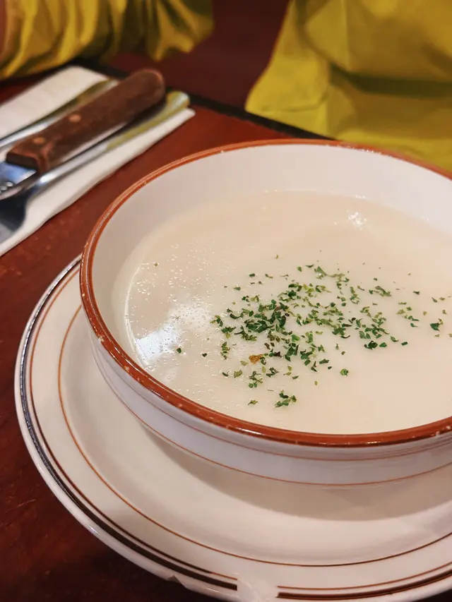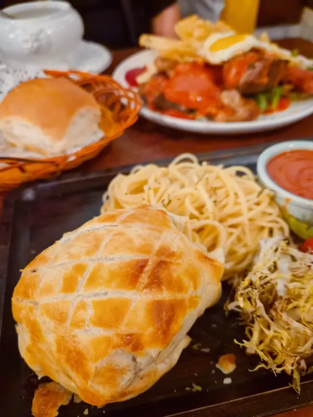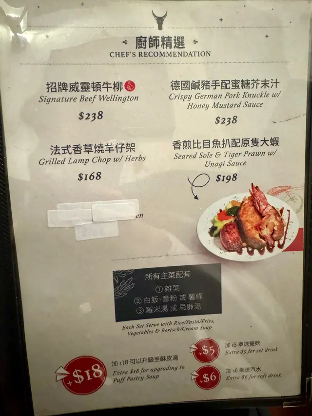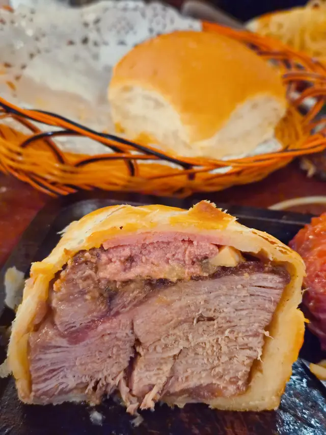 喺佐敦嘅「牛屋餐廳」,裝潢充滿懷舊氣息,濃厚嘅歐陸風格令人一入門就被吸引。今次我點咗兩款經典主菜,分別係 **招牌英國威靈頓牛柳** 同 **英式雞扒餐**,每一樣都係用心之作,帶嚟超級滿足嘅味蕾享受!😋---🍽️ 招牌英國威靈頓牛柳呢個威靈頓牛柳真係不得不讚!外層酥皮係香脆鬆化,焗得啱啱好,金黃色嘅表皮仲滲出淡淡牛油香味。一刀切開,粉嫩嘅五成熟牛柳即刻呈現眼前,肉汁隨即流出,每一口都係濃郁嘅牛肉香氣。牛柳內嘅蘑菇醬層次感豐富,帶少少鹹香同菌類嘅清香,完全提升咗整個菜式嘅質感! 配菜有意粉,醬汁均勻地裹住每條意粉,煙韌又唔會過熟,味道濃淡適中,完美平衡咗牛柳嘅濃郁感覺。仲有一碗羅宋湯,酸甜開胃,裡面有蕃茄、洋蔥同多種蔬菜粒,飲完令人覺得好暖心。成個菜式嘅味道層層遞進,真係值得專誠嚟試!💯 ---🍗 英式雞扒餐英式雞扒餐係另一款令我印象深刻嘅菜式。雞扒煎得啱啱好,外層微微焦香,內裡依然嫩滑多汁,咬落去仲帶少少雞肉嘅自然甜味,食完唔會覺得膩口。 配菜有薯菜,薯仔口感綿密,味道簡單但好清新,啱晒平衡雞扒嘅濃香。同餐仲配咗酥皮忌廉湯,呢一碗湯真係成個餐嘅亮點之一!酥皮焗到香脆鬆化,輕輕用匙羹撕開,底下係香濃嘅忌廉湯,湯底奶香濃郁但唔會過膩,飲落好舒服。每一啖都充滿溫暖嘅感覺,簡直係英式鄉村嘅味道!😋 ---🏠 餐廳氣氛與服務呢度唔單止食物出色,環境仲好有Feel!裝潢懷舊又充滿情調,啱晒鐘意影相嘅打卡控!餐廳唔算大,但坐得舒服,燈光柔和,感覺好放鬆。最重要係,侍應服務好貼心,細心問候又笑容滿面,令整體用餐體驗更加分!👍 #懷舊餐館 #歐洲小酒館氛圍---總評:🌟🌟🌟🌟🌟牛屋餐廳係一間充滿歐式懷舊氣氛嘅小店,無論你係鍾情牛肉嘅朋友,定係想搵個地方同另一半度過一晚浪漫晚餐,呢度都係唔錯嘅選擇!下次經過佐敦,記得嚟呢度一試佢嘅威靈頓牛柳同其他出色菜式,保證滿足你嘅味蕾!🥂❤️ …查看更多