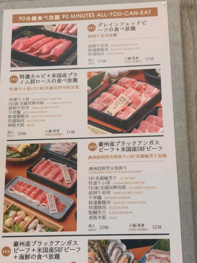 呢間放題真係「牛」到爆🐮 由頭到尾都係滿滿嘅牛氣同泰風味,啱晒鍾意食大件牛、又貪新鮮玩味嘅朋友😋 講返重頭戲先,Lv4 嘅澳洲穀飼黑安格斯牛同 SRF 美國極黑牛真係正到癲😍 安格斯牛油香濃郁、肉質嫩滑,一咬落去肉汁即刻爆出嚟,口感勁有層次🥰 至於美國極黑牛,脂香更加誇張,啲油花勻靚到好似雪花咁,啖啖都係幸福感,食到唔捨得停🤤 仲有海鮮放題加持,蝦、蠔、花膠樣樣齊,絕對滿足晒海鮮控🤤 但今期最值得尖叫嘅,係期間限定「泰 Happi」主題❣️ Level 2 開始已經有榴槤雪條任食,甜到心花怒放🤗 升上 Lv4 仲有泰式生蝦同 D24 榴槤雪米糍,鮮甜生蝦一啖就知新鮮,配埋酸辣醬汁好開胃🥳 到 Lv5 嘅貓山王榴槤雪米糍簡直係榴槤控夢中情人,香濃黏口,絕對係主角👍 除咗牛同榴槤之外,泰式放題都滿滿驚喜:涼拌秋葵、山椒扇貝裙邊清爽解膩😎 炸墨魚餅做到外脆內彈牙,一口接一口🥰 青咖喱雞又香又惹味,配埋泰式肉碎炒飯食極唔厭👍 甜品仲勁浮誇——由榴槤芝士蛋撻到榴槤巴斯克,都超有記憶點,再加埋泰式香芋椰汁露、開心果泡芙、牛奶雪糕,餐尾絕對唔輸蝕🌟 …查看更多