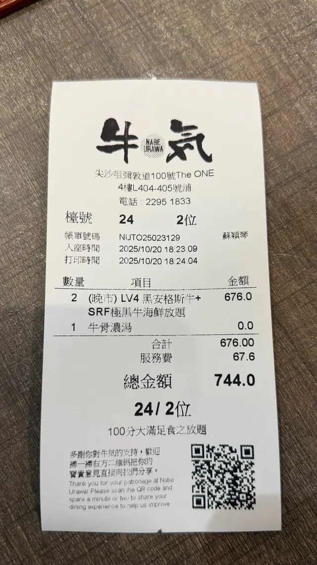 主頁餐廳香港尖沙咀牛気 (The ONE)