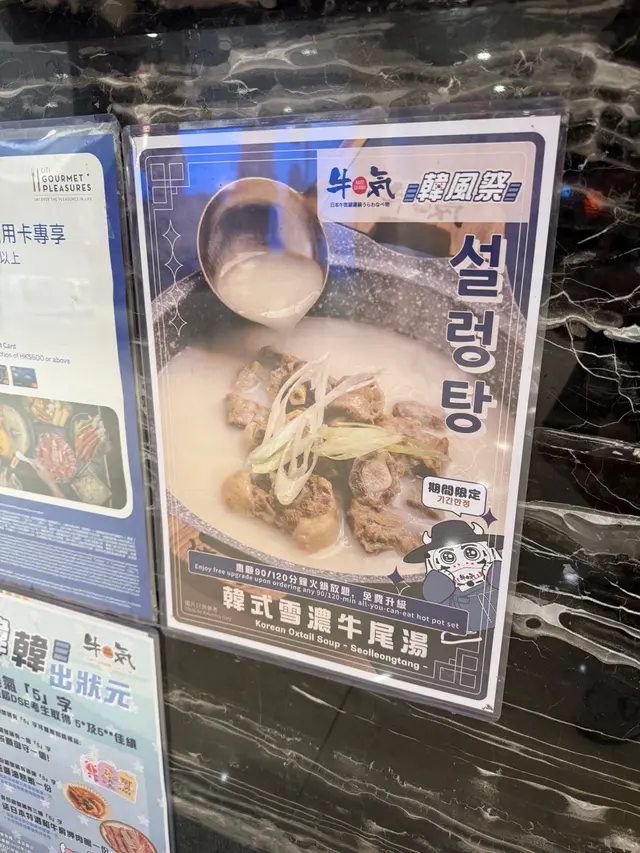 鍾意打邊爐既我,覺得一年四季都合適。呢日去咗日式放題火鍋餐廳既牛気,任飲任食,好滿足呢~店內地方非常闊落,感覺以日式風格設計,裝修別具一格,環境潔淨舒適。讚好牛気社交平台專頁,即可獲得禮品一份 [御守] 及 [達摩鎖匙扣]。餐點主題:韓風祭 ~ LV4 澳洲穀飼黑安格斯牛 + SRF 美國極黑牛放題 + 海鮮放題 牛気最新推出既韓風祭,有多款特色既韓國食品,蜂蜜炸雞翼配韓國蜂蜜芥末醬、韓式醬豬手、韓式炒飯、韓式芝麻拉麵、泡菜餃子、韓式蘿蔔燜牛肋條、韓式上湯小籠包等等,樣樣都咁吸引,一於點咗先。蜂蜜炸雞翼配韓國蜂蜜芥末醬雞翼炸至金黃香脆,入面嫩滑有肉汁,點埋韓國蜂蜜芥末醬,少少甜,帶有芥末辛香,口感層次豐富。韓式炒牛肉喜歡食少辣既人就唔好錯過呢款啦,牛肉用上韓式香辣調味料醃製後,肉質嫩滑,微辣好食。韓國泡菜餃子呢款係手工餃子,粒粒餡料飽滿,只要輕輕淥下就可以食得,皮薄餡靚,裡面又多汁,好滋味。韓國年糕條年糕放入火鍋湯底一陣,直至變到軟身即可食用。年糕煙煙韌韌,有嚼口,吸入湯底更美味。韓國芝麻拉麵 & 韓國辛辣麵辛辣麵就食得多,今次試吓芝麻拉麵先,麵條好掛湯汁,彈牙爽口,成碗好快就食晒。火鍋湯底有多款選擇,亦有北海道昆布湯、秘製牛肉清湯、完熟番茄濃湯、黑蒜豚骨湯、日式牛骨濃湯(微辛)及川椒麻辣湯(辛辣)等等,想一次過試2款湯底亦可 +$10。揀選鴛鴦湯底,北海道昆布湯清甜味道,以及黑蒜豚骨湯,味道濃厚豐腴,十分鮮味,濃而不膩,香氣十足,配料食材新鮮,放入湯燙一燙,吸收晒海鮮湯底嘅精華,食起上嚟更鮮甜更好味。澳洲毂飼黑安格斯牛 - 色澤鮮艷,肉質軟嫩,充滿濃厚嘅牛肉香味,每一啖都香氣十足。SPF美國極黑牛 - 賣相已經好吸引,品質極佳,脂肪分布均勻,入口即化。美國肩胛肉眼 - 高質素嘅牛肉,肉質結實有嚼勁,油花豐富,濃郁嘅牛肉風味。日本帆立貝 - 厚身嘅帆立貝,肉質爽口,帶點清甜。挪威三文魚刺身 - 三文魚肉質非常嫩滑,有著清新、鮮美嘅口感。花膠 - 花膠都幾厚身,滋補養顏又可滿足口感。大海蝦 - 肉有彈性,蝦味重味道鮮美。自助吧熱食 :吉列炸蝦 - 炸到外層金黃鬆脆,蝦肉鮮味同彈牙。意式蕃茄肉丸 - 肉丸彈牙,吸收醬汁嘅味道,酸甜好開胃。紅酒燉牛肉 - 牛肉燉至軟身,鮮嫩多汁,吸入左濃厚嘅紅醬汁,紅酒香味散發出來。日式蟹棒冷豆腐 - 口感清爽,開胃小食。脆炸薯條 - 金黃香脆,薯味濃郁,點埋醬汁更滋味。自助吧甜品 :焦糖芝士巴斯克 - 外面焦香,內裡濕潤柔軟,芝士味濃厚。咖啡拖肥味雪糕 - 幼滑嘅雪糕,每一口都有濃郁嘅拖肥同咖啡味,食咗好幾杯。脆皮提拉米蘇大福 - 外皮煙韌嘅大福,包住帶點酒香嘅提拉米蘇,口感層次豐富。自助區擺放多種食物及飲品供應 : 有機菇菌、本地有機農耕蔬菜、新鮮丸類、粉麵、醬料、關東煮、前菜小食、湯品、水果、特飲、雪糕雪條、甜點等等,款式實在太吸引啦。…查看更多