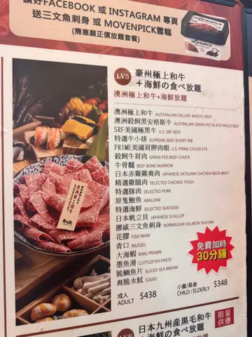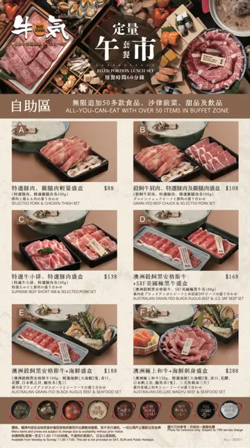 牛最近有friend去完食牛氣,見佢個依家做緊個泰happi既promote,見佢地食完幾吸引,自己都想黎食一次,佢地一共有6個級別既餐,我就揀左佢地最人氣既4lv餐😄4lv澳洲穀飼黑安格斯牛+海鮮放題($338)湯底就揀左佢地其間限定既泰式船麵湯,湯底味道濃郁,仲有平時船麵有既芽菜同脆脆🫕入座後就會立即送上幾款肉同海鮮,4lv既肉都唔錯,牛味較濃,唔係入口即溶果款,食落冇咁肥膩🐮海鮮最正就係帆立貝,同埋青口,兩款都覺得新鮮,另外仲有鯛魚片同蠔比較好既係可以落單叫,蠔可以大隻d就最好,最特別就係竹笙蝦滑,又鮮味,又索湯🐟🦐🦪呢度有三文魚刺身同埋幾款壽司,迷你丼,三文魚刺身我覺得係幾靚,夠肥美,吞拿魚蓉迷你丼就正常發揮,壽司我覺得可以skip🍣泰式promote入面我就最鐘意泰式生蝦,另外既前菜魚皮爽脆好食,山椒扇貝裙邊都係比較好既一環🇹🇭外面自助區都有多款蔬菜,丸類等等,仲加入左幾款泰式熟食,同埋mama麵,飲品種類就有多款罐裝飲品🥬🐥最後甜品一定要叫榴槤雪米糍,佢除左一粒雪米糍,仲有個細小既榴槤蓉雪糕,我一個人食左4份,都冇乜食其他甜品🤩牛氣呢個泰happi主題我覺得幾好,特別係泰式生蝦同埋榴槤雪米糍,湯底如果有冬陰功湯就最好,因為同個mama麵夾就一定係冬陰功,而唔係泰happi類既就覺得三文魚刺身同前菜魚皮都鐘意,牛肉4lv都唔錯,有要求既可以試下更高級別😉…查看更多