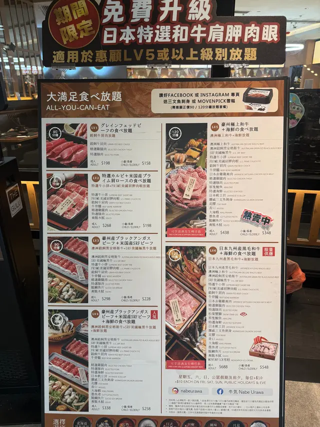 澳洲穀飼黑安格斯牛+ SRF美國極黑牛放題+海鮮放題