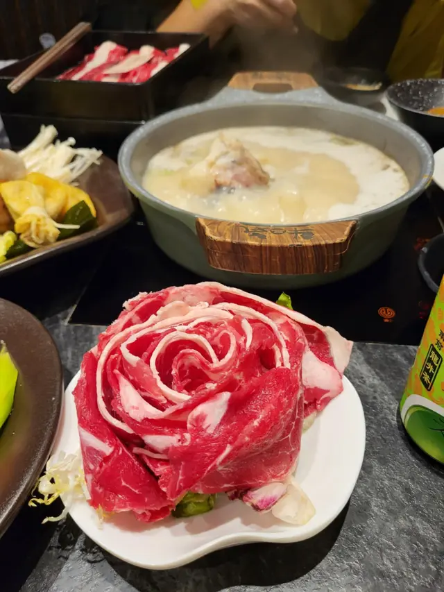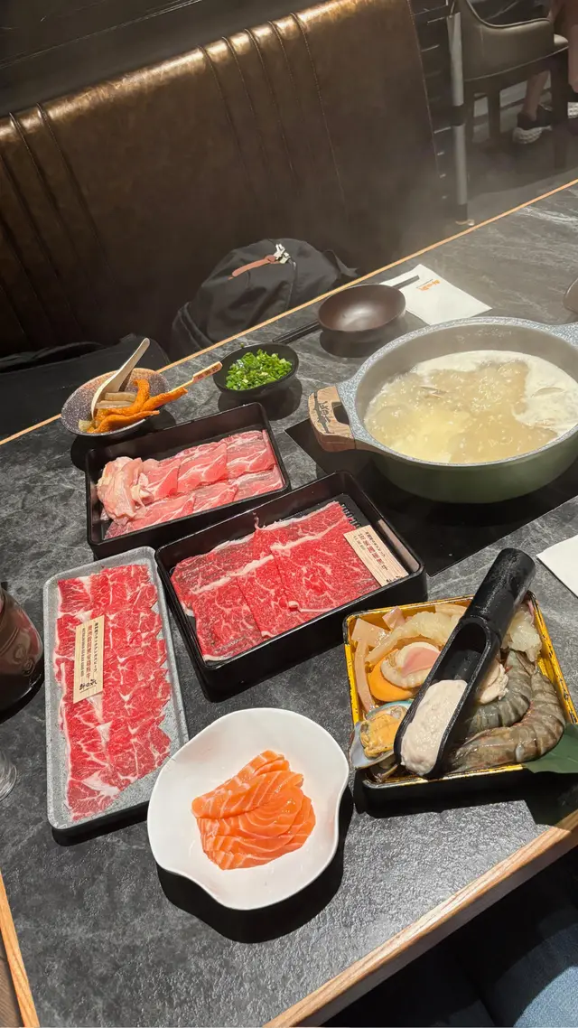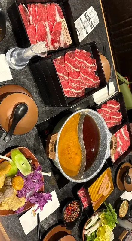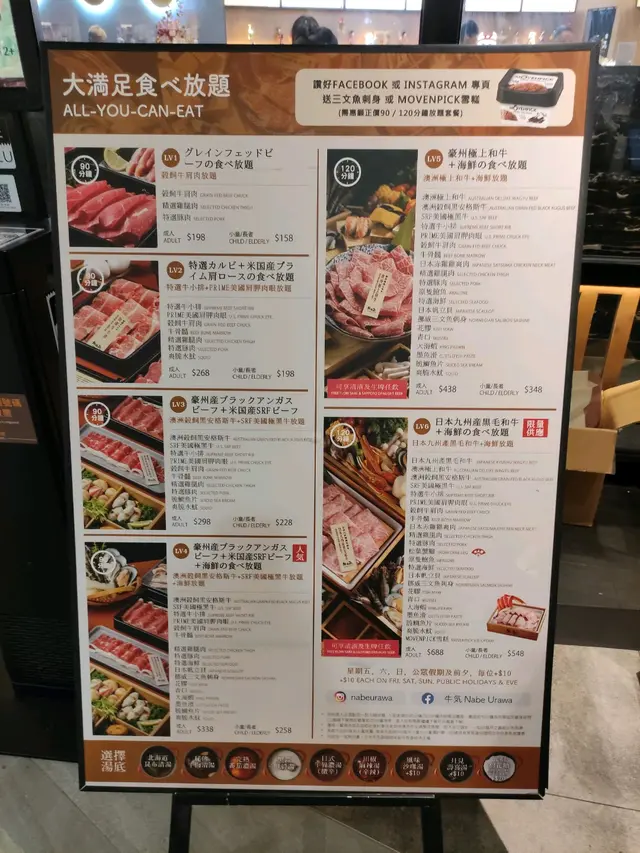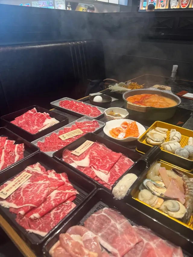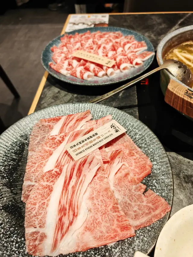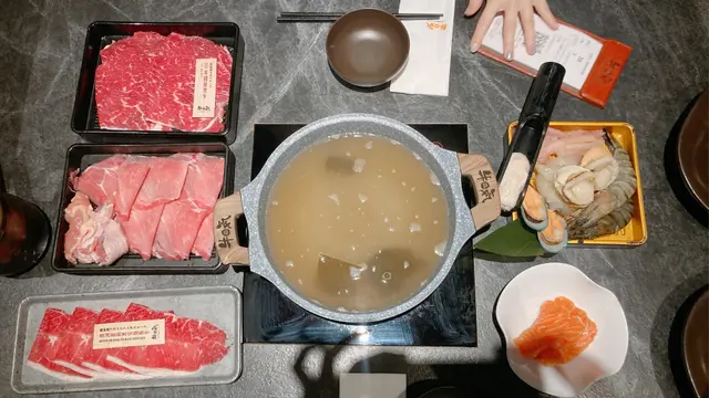 今天是平日的中午,有60分鐘的定量午市套餐,價錢相對地划算,定量餐牌不會放在門口的當眼位置,而是在餐廳的宣傳單張內,大家請留意一下。我和老公分別點了C和D餐,湯底選了日式牛骨濃湯,肉類是定量的,之後熟食/甜品/其他火鍋配料和飲品等等可以任食。熟食的選擇雖然不多,但看起來挺吸引的,當中雞翼和燒賣很美味,雞腿則味道太辣味道一般,而火鍋配料選擇亦有很多,丸類的味道相當不錯。至於肉類方面,特選牛小排的肉質最為嫩滑,而且亦充滿著濃濃的牛肉味,美國極黑和牛的口感則略為粗糙,個人便不太喜歡了最後安格斯牛的牛味最重,但是我老公卻說有很重騷味,當牛味太濃郁時,便可能變成了騷味,我喜歡羊肉的騷味所以這款沒有問題,不過雖然口感都算柔軟嫩滑,但是我都是最喜歡牛小排入口即溶的感覺。至於甜品方面,坦白說便沒有什麼選擇了,可以自己製作軟雪糕,但是奶味不重,其他餐廳自家製甜品亦不好吃,現成的雪糕只有兩款,選擇並 不多。飲品方面,餐廳沒有自家製茶類,差不多全部都是含糖的飲料,烏龍茶只有兩款,但是兩款都不好喝,茶味很淡。價錢方面,定量C餐$138,D餐則$168,餐廳設有加一服務費,最後兩人總共$337。總結來說,雖然定量套餐只有60分鐘,時間很緊迫,但是勝在性價比高,不過加一之後其實價錢都不算真的很便宜,餐廳的熟食很吸引,下次我們應該會點最便宜的定量A餐$88,可以主攻熟食和丸類。…查看更多