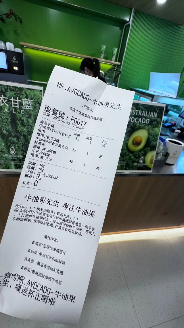 今日吾係咁肚餓想飲野當下午茶,去咗呢間好似幾健康既牛油果先生,下午4點工作日都有好多人企喺度等外賣!等左10分鐘終於有🤤🥑 牛油果羽衣甘藍奇亞籽燕麥 $55一打開膠杯嚇親!佢將成半個新鮮牛油果打左入去,仲要係熟到剛好嘅翠綠色。配上煙韌燕麥珠,軟綿得嚟帶咬口,奇亞籽泡發得啱啱好,撈埋羽衣甘藍碎,口感超豐富,飲到一半已經好飽肚!冰沙超解暑!🧀 牛油果明治鮮奶絕配芝士奶蓋 $52呢杯絕對係驚喜之作!頂層係鹹香芝士奶蓋,綿密到似食緊空氣感濃芝士🫨中層係牛油果明治鮮奶,底層居然係新鮮牛油果肉打成的蓉🫧飲落先嚐到奶蓋的微鹹,跟住係牛油果奶的醇厚,最後咬到細碎果肉,層次分明得嚟又融合得巧妙!🥛 牛油果混奶 $52朋友最近吾飲得冰,揀左呢杯難得吾係冰沙既手搖,牛油果嘅青澀同牛奶嘅甜潤平衡得剛剛好,杯底仲有少量牛油果粒增加口感。朋友飲咗一啖即刻眼仔發光話似飲緊液態牛油果布甸咁,入面仲有燕麥粒爆爆珠,推!臨走見到櫃枱又開始排長龍,呢個質素我應該會成日黎,又想試下佢個榴槤味產品,已經搵定聽日再嚟嘅理由~…查看更多