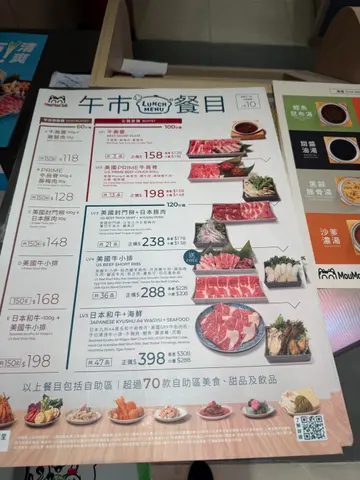 旺角火車站上蓋的火鍋放題,放題套餐平日最平$158,任食牛胸腹和出邊食物,限時100分鐘。我哋食最平個套餐,牛胸腹質素正常,唔差,對得住呢個價錢,其後逐添的牛肉質素平均,最後食咗十幾碟。自助區提供的食物種類繁多,蔬菜區雖然沒有什麼特別的蔬菜選擇,全部都係大路野,蔬菜尚算新鮮。有其他國家食物供應,炸雞、關東煮、麻辣鴨血、炸春卷、脆皮牛奶卷等,味道都唔錯,淨係食雜食都飽飽地。飲品有多款選擇,甜品有軟雪糕,雪米糍和雪條。…查看更多
