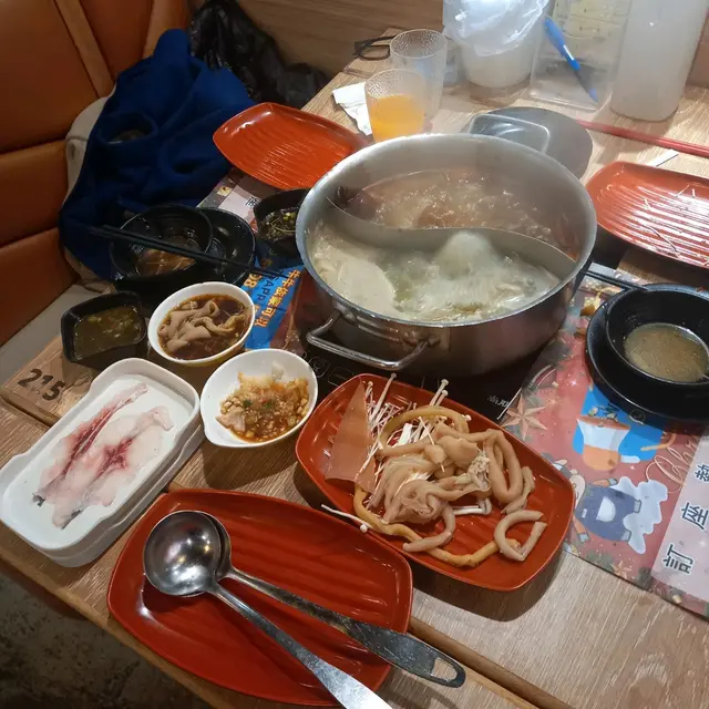 午市(12:00-16:29 以入座計),每位$158,午市免收加一服務費。湯底有八款可以選,而且可揀兩款,不用另外加錢,要咗芫茜皮蛋 + 馬拉沙嗲。肉類有三款牛、兩款豬、一款羊。・Prime 頂級牛梅花,少肥,肉質軟身,無咩肉味・穀飼牛板腱,極少量肥膏,肉質有咬口,少少肉味・安格斯牛肩胛,接近無肥膏,肉積偏嚡,少少肉味・黑毛豬五花肉,肥瘦適中,頗爽口・黑毛豬梅花肉,肥瘦適中,無咩口感・羊肉片,少許羊騷味,肉質有咬口所有肉類都切得好薄,所以食落無咩口感。海鮮有五款,海蝦、蜆、脆肉鲩、紐西蘭青口、大魚頭。大魚頭不錯,頗新鮮,有魚雲。以上肉類及海鮮都係抄剔紙仔入單,其他火鍋配料係出面自助區拎。火鍋配料基本嘅丸、腸、菜、菇、麵、等等。另外有啲比較少有嘅牛骨髓、雞子、鵝腸、牛柏葉、水鱿魚、豬皮、八爪魚仔、獨立包裝麻吉燒。有少量餐前熟食,肉燥飯、子薑皮蛋、凍豆腐。飲料有不少選擇,罐裝汽水啤酒、盒裝荳奶、盒裝茶、即沖咖啡機、即斟飲料、沙冰。甜品亦都有好多款式,多款雪糕雪條、一口蛋糕、小杯甜品、台式芋圓、豆腐花。總括嚟講,午市十分抵食,雖然食物唔係咩高級嘢,但款式多,質素合格,收費合理,用餐時間充裕,座位及空間舒適,出菜收碟服務滿意,我應該會再次幫襯。查看更多