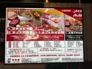 呢間主打潮汕牛肉,大胃都係第一次食咋!一嚟就連埋潮汕牛骨湯上埋個牛肉圈,有晒唔同部位嘅牛肉,有吊龍、胸口油、雪花、五花趾同匙柄,有寫要淥幾多秒