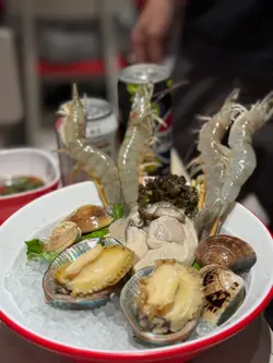 跟餐有海鮮拼盤送,有鮮蝦、桶蠔、鮑魚同花甲,倒晒落去淥,超鮮香爽彈,蝦肉色澤金橙,蠔肉同鮑魚都好滑