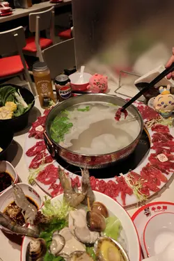 出面嘅配料區琳琅滿目,有啲唔常見嘅配料都有,牛骨髓、雞子、竹笙、鴨血、有餡牛丸、手工餃子等等,個款睇落好靚仔新鮮,食完都會想攞多round