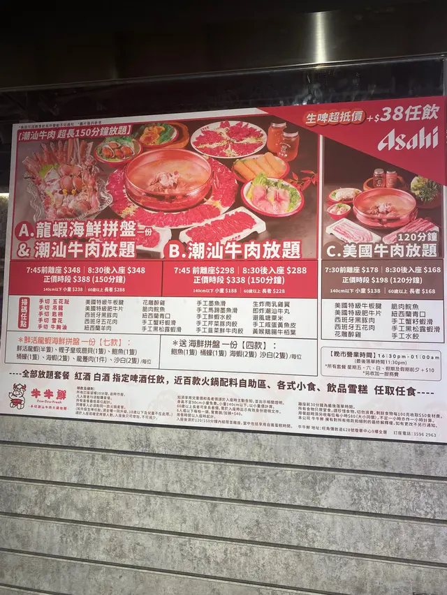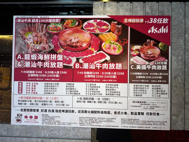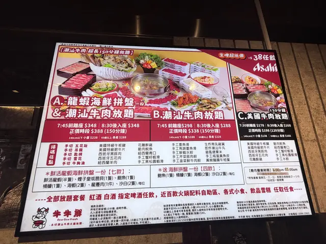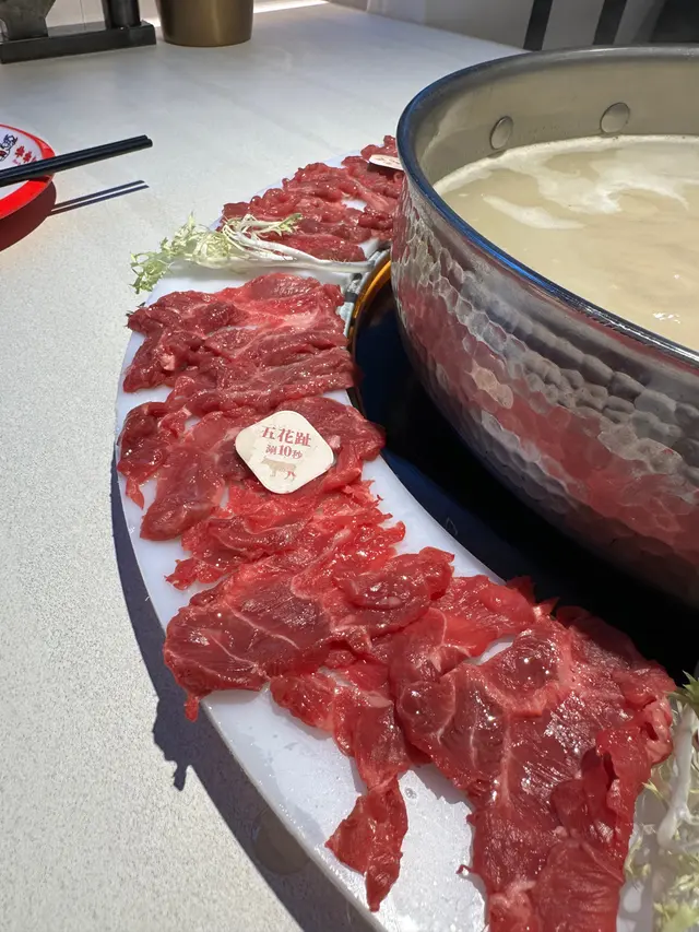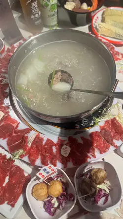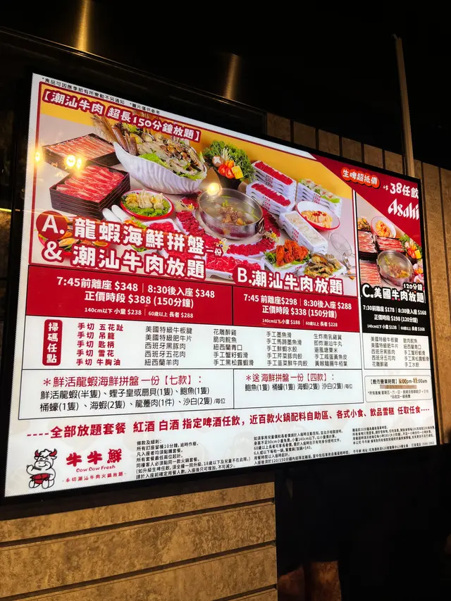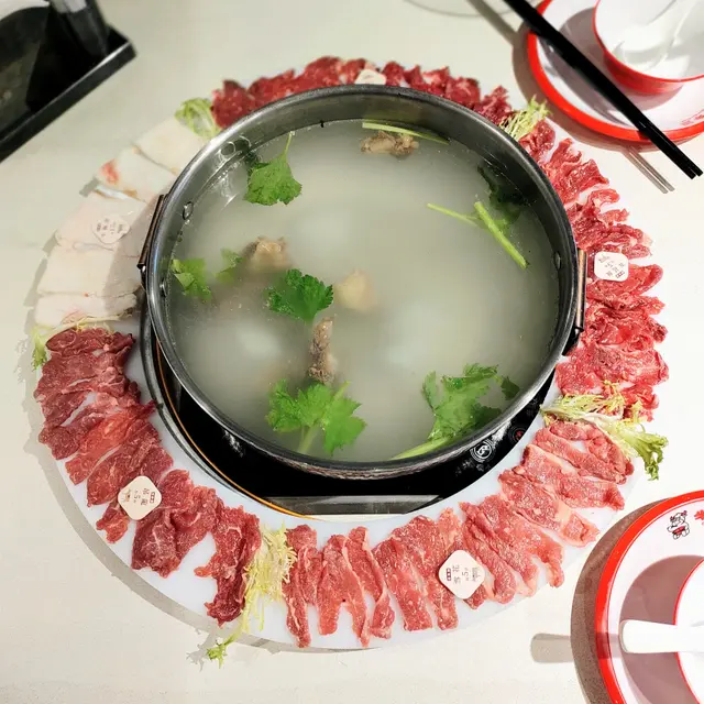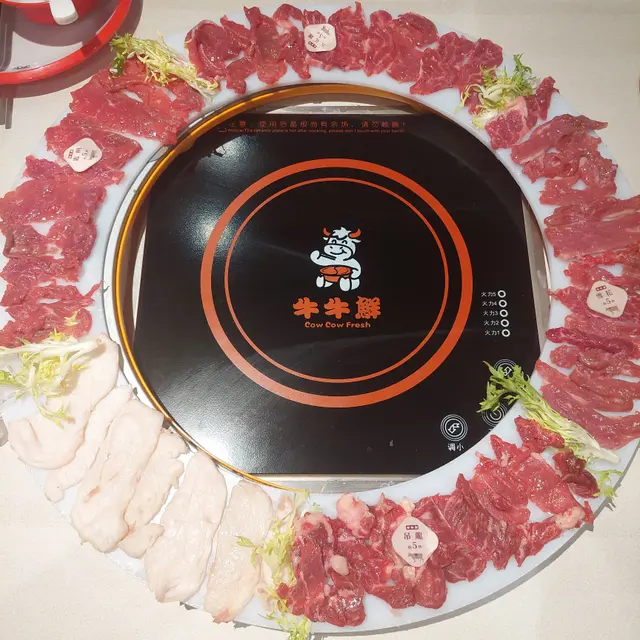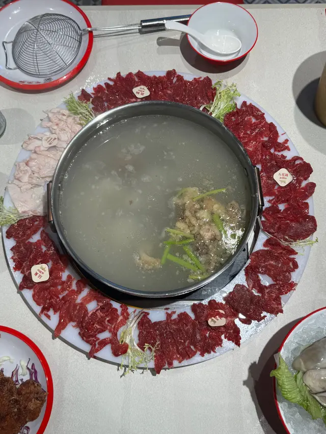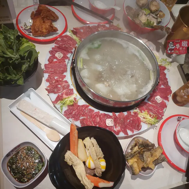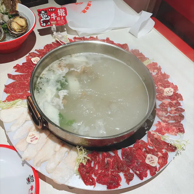 呢間主打潮汕牛肉,大胃都係第一次食咋!一嚟就連埋潮汕牛骨湯上埋個牛肉圈,有晒唔同部位嘅牛肉,有吊龍、胸口油、雪花、五花趾同匙柄,有寫要淥幾多秒