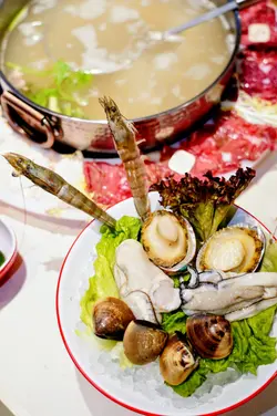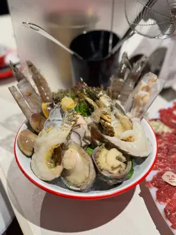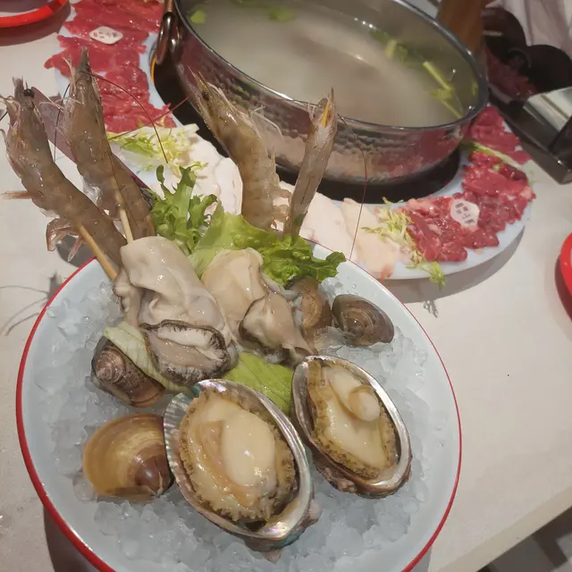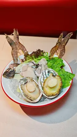 跟餐有海鮮拼盤送,有鮮蝦、桶蠔、鮑魚同花甲,倒晒落去淥,超鮮香爽彈,蝦肉色澤金橙,蠔肉同鮑魚都好滑