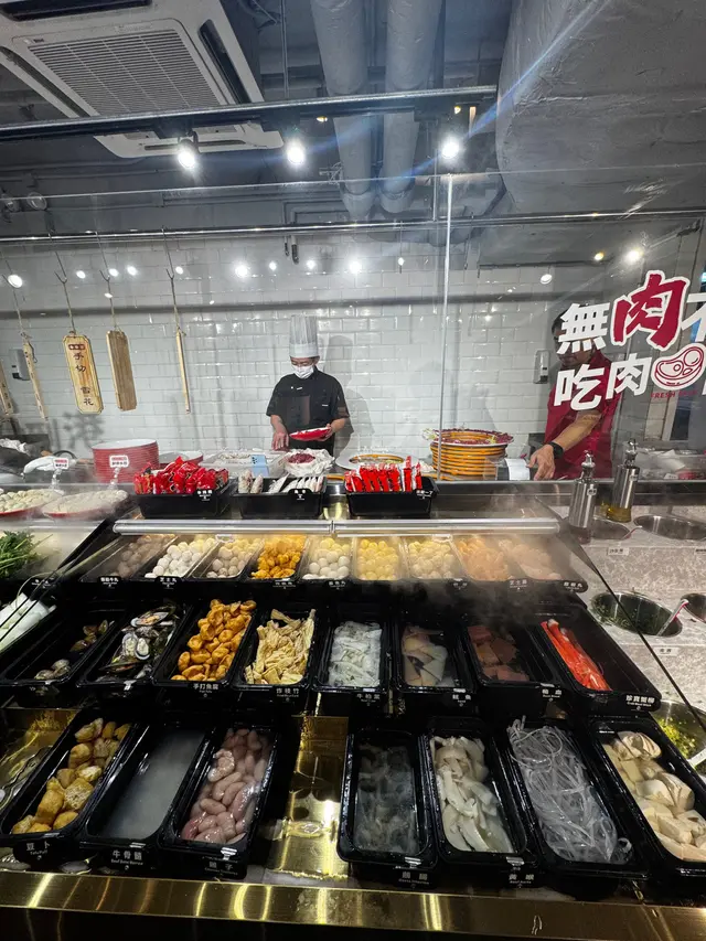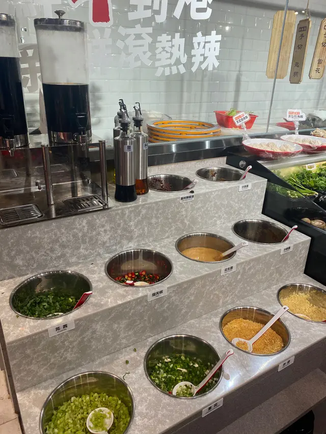 出面自助區任君馳騁,醬料區可以配自己嘅醬料,都好多選擇。仲有熟食區,有紫菜響鈴、炸物同熟嘅丸食,味道都唔錯