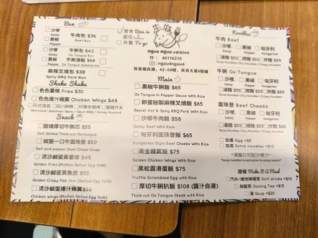 牛牛 (西貢) 網址: https://s.openrice.com/QrbS0VD0A00 地址: 香港西貢福民路58號高富樓A座地下32號舖 電話: +852 46116216