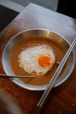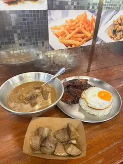 沙嗲牛肉炸面$58少有地方有炸面,即炸條條脆口,沙嗲汁濃郁花生醬味偏甜。牛肉無根好鬆軟。味道不錯係麵份量少了點😅 卵蛋秘製麻辣叉燒飯$65輕輕的麻辣味不太搶,叉燒唔夠入味厚身有點韌,飯加埋雞蛋黃好香。 流沙鹹蛋黃魚皮$55呢個超正超邪惡🤩上枱係熱的超香咸蛋黃香。 入口超脆索索聲,一d都唔覺油膩,好食到停唔到口😋 喺西貢玩完水去返市中心,肚餓了見到呢間小店坐滿人,俾佢個炸面同麻辣叉燒飯吸引住,等咗一陣位,好快就有位啦。雖然係小店都坐得算舒服,亦有高椅吧枱,都幾方便一人前。乾淨企理,下次找個食牛舌的朋友再去試埋牛舌同牛面珠登😋