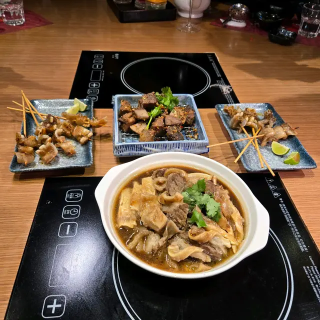 小妹平時工作係在1-2個月前約實出差工作地點,今次的屯門小冷水都唔例外,如果唔係因為做嘢根本就冇聽過呢個地方🤣🤣🤣。在約實嘅時候同組的地膽同事已經話「到時帶你哋去食牛皇莫啦,啲牛腩好出名!」,因為咁小妹與女同事因此期待咗成個月🥰👏🏻👏🏻👏🏻放飯時有地膽帶路,走到蝴蝶村「冬菇亭」的牛皇莫食晏,呢度白天做早餐、午餐、碟頭飯;晚上先做火鍋!牛皇莫本身出名午餐食崩沙腩、坑腩、金牌巴基斯坦咖喱,12點啱啱到崩沙腩已經賣晒啦,唯有叫仲有的一級坑睇腩嚕🤓地膽仲話食飯比食麵好食,可能麵食有啲鹼水味,於是全都要飯😆😋咖喱薯仔三寶飯(腩脷肚)金牌巴基斯坦咖喱嘅後勁好辣,配白飯食果然一流;金牌咖喱薯仔入晒味,本身牛腩牛肚同牛脷都好好食,配上咖喱別有一番風味👍🏻😋牛四寶湯飯(腩脷肚筋)金錢肚係白色新鮮美味;配上超級軟腍牛筋、超厚切牛脷、超級清甜白蘿蔔、超級甜美清湯底;普通牛腩肉質偏瘦有咬口🤤🤤😋一級坑腩搭普通腩飯(因為臨尾坑腩數量唔夠)坑腩口感好有層次😍肉汁鮮嫩牛皇莫由本港首席肥牛批發商,人稱「牛皇雄哥」— 莫先生主理。亦都一直堅持選用每日鮮宰「騸牯牛」牛腩,甘香味濃❣️ 晚上最出名的是火鍋,最近做緊優惠$888有足料牛尾鍋+六款騸牯牛部位,牛肉部位的供應視乎當日情況而定。店內特別的是四人卡位張枱係正方形,超大張枱,估計原因是因為火鍋超大盤😆所以需要咁大張枱!今日咁早起身山長水遠入到嚟呢度的動力,就係為咗食呢一餐豐富嘅午餐🤤食過一次牛皇莫啲牛之後,真係返唔到轉頭㗎,到屯門價錢比港島平一半🤩有咩可能會抗拒呢(除非本身唔食牛就例外啦🫰🏻)…查看更多