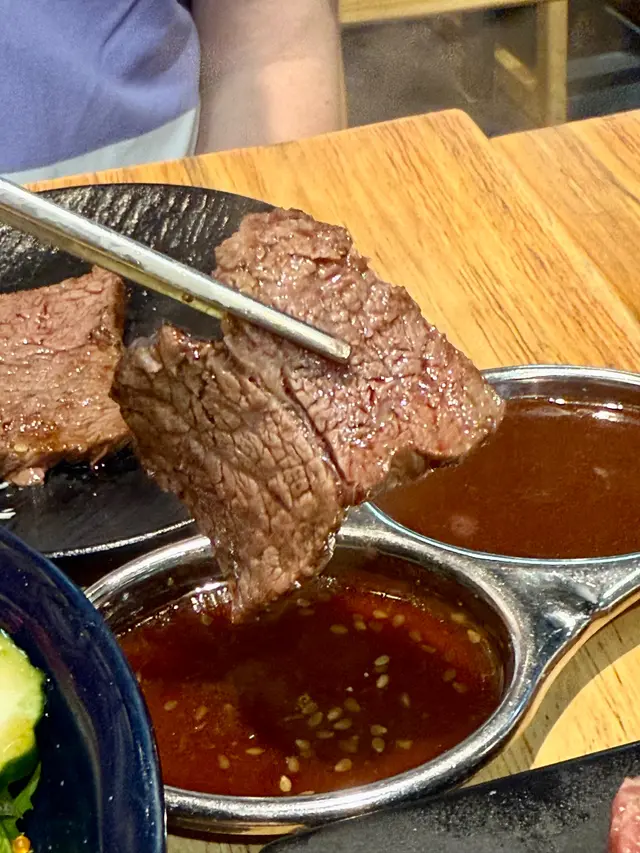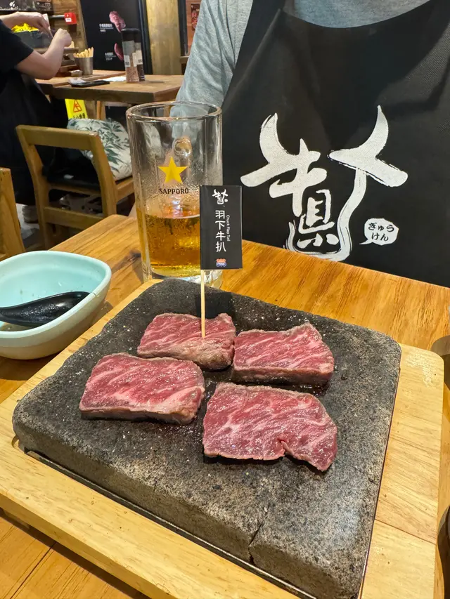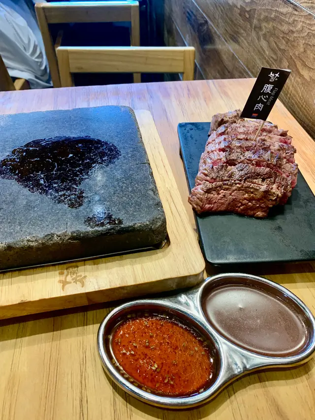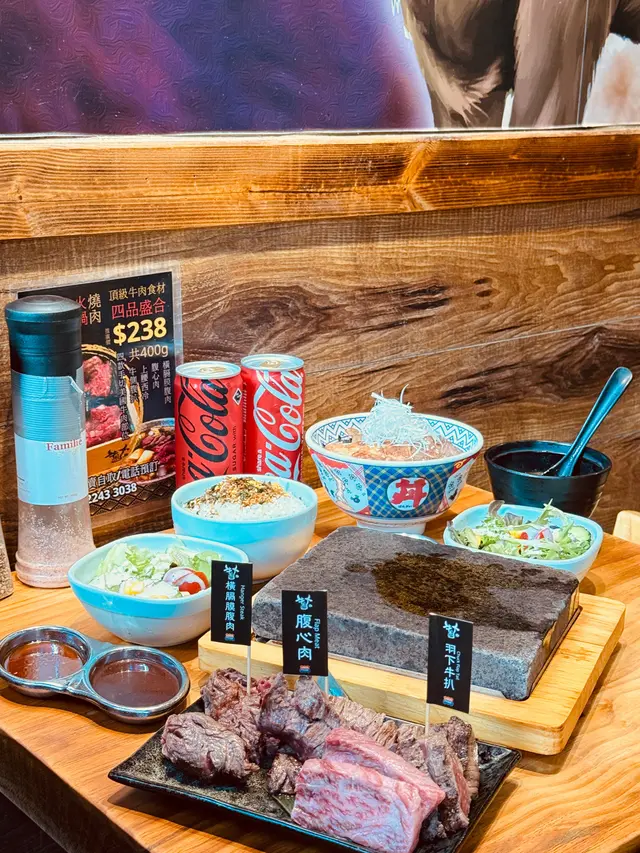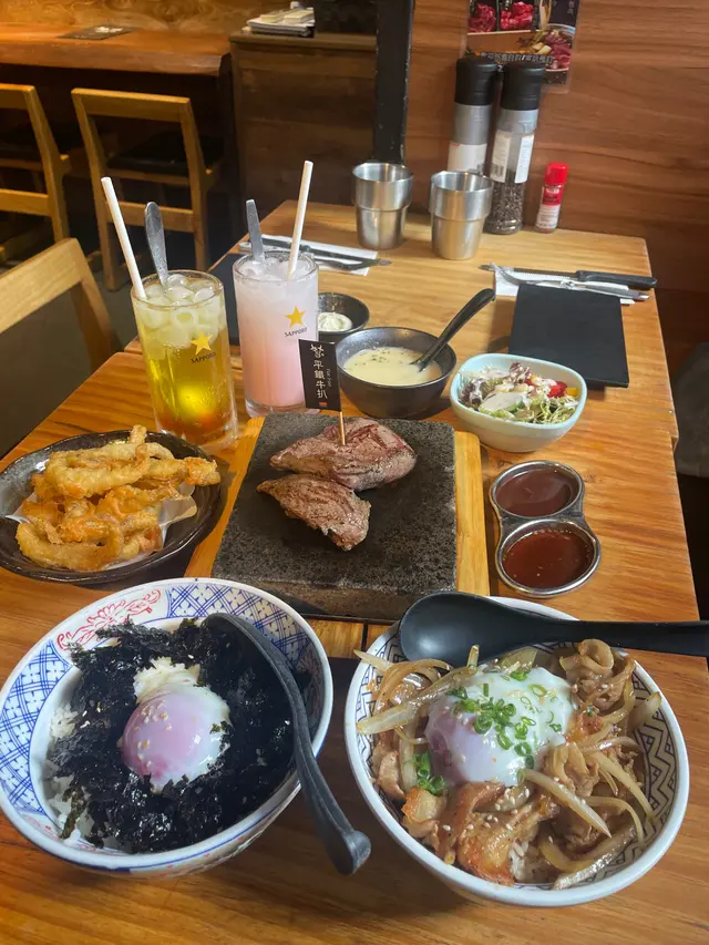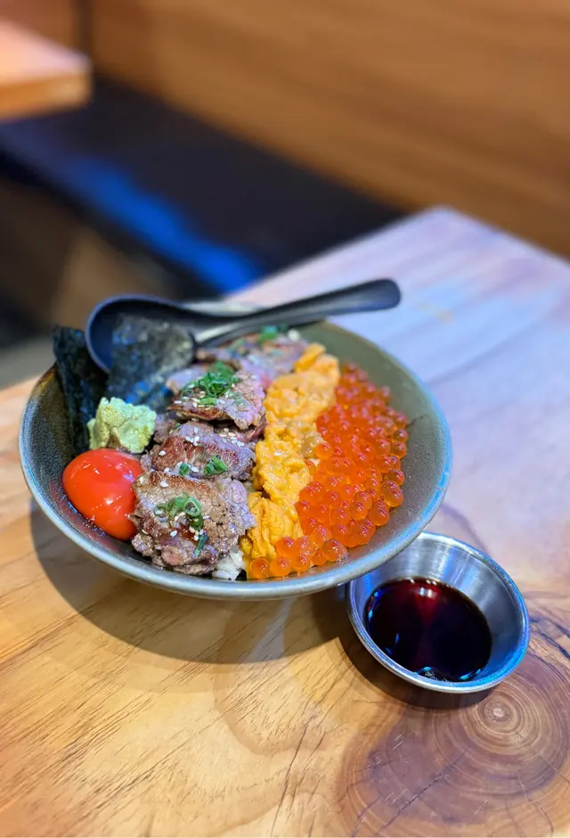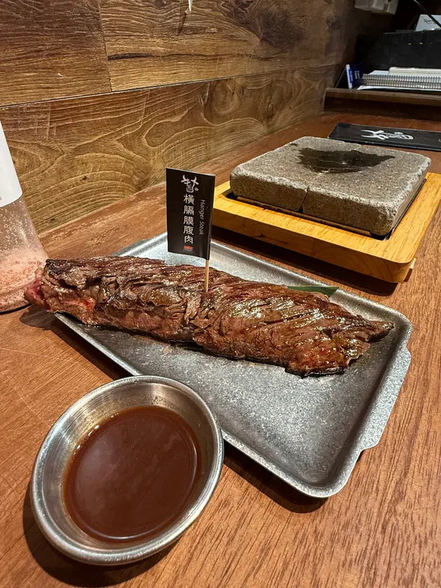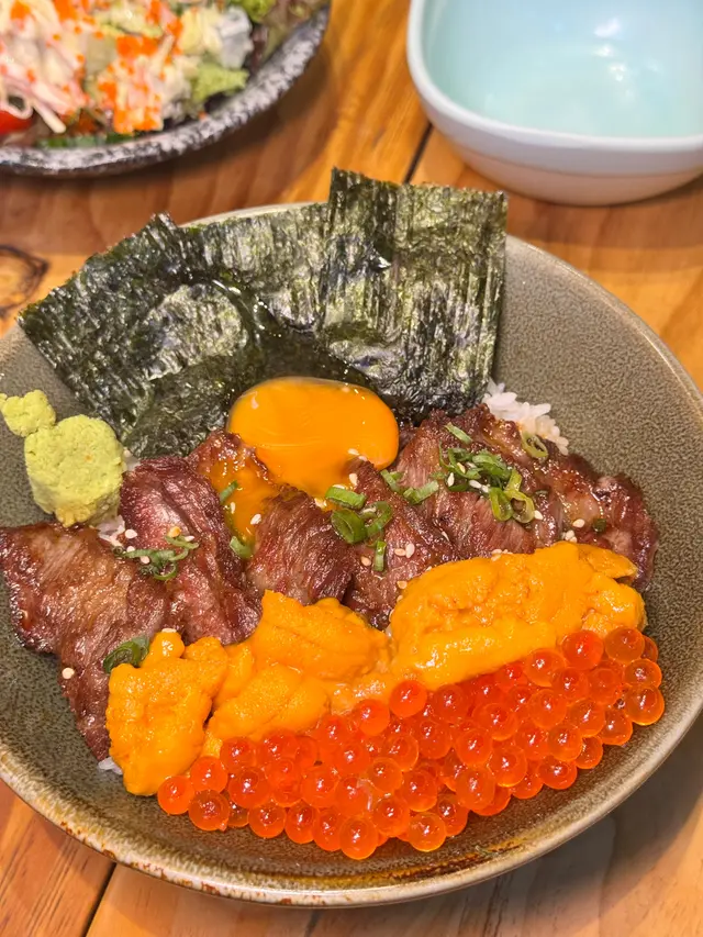 香港首間石燒濕式熟成牛🌟荃灣日糸熱石熟成牛扒🥩牛県🐂📍荃灣享和街49號地下D1號舖今晚同朋友去了這間位於荃灣享和街嘅牛県🐂,主打美國USDA Prime級數濕式熟成牛排,採用濕式熟成牛🥩即是將牛肉真空包裝,以保留牛肉水分,減低重量損耗,在冷藏環境中,讓牛肉本身的酵素進行熟成,以增加嫩度和多汁性,同時減少水分流失,喜歡食牛嘅朋友絕對必試。👅餐廳日式木糸元素環境舒適🎋🎎🎏,營造出放鬆的氛圍,讓人可以慢慢地享受一頓濕式熟成牛排晚餐。牛排放在熱石上燒🪨,熟成度可自由控制,在熱辣辣既熱石上燒得焦香,而內裡軟腍細嫩,鎖緊既肉汁鮮明,入口極富彈性,和市面常見既燒牛排🥩味道,截然不同很喜歡。😋三重燒肉盛合💰抵食$288,絕對是牛扒控必點之選❤️,有共300克既盛合,可以一次過品嚐羽下牛扒、橫隔膜腹肉、腹心肉與和牛四種不同部位,每款口味不同令人回味無窮。加$32轉套餐超划算連飲品、湯、沙律、薯條和飯可以五選三,燒肉配有燒肉汁同自家製紅酒汁🎐。💠羽下牛扒 - 即是牛肩胛骨下方靠近肋骨的部位,油花分布均勻,肉味鮮甜又有油香🌟。💠牛橫隔膜 - 中間部位較珍貴,每頭牛只可以切出一塊HangerSteak。味道濃郁且非常柔嫩,牛味香氣十足,令人難以忘懷💯。💠腹心肉 - 則是意想不到的柔軟,咬下去的瞬間能夠感受到肉汁四溢,讓人欲罷不能👅。💠加送的和牛上蓋肉 - 入口即化搭配簡單海盬,讓肉的自然風味得以充分展現,牛肉愛好者的必試之選❤️。除了濕式熟成牛排選擇外,還有全日供應海膽魚籽燒肉丼🍚都係心水推介。💠海膽魚籽燒肉丼 - 金黃色海膽魚籽色彩豐富,與牛肉的紅潤形成鮮明對比,讓人垂涎欲滴。海膽鮮甜與牛肉丼飯🍚的油香融合,細膩滑順又帶鹹香層次,絕對是必點之選。💠炸九肚魚 - 一定要趁熱食📣,炸得乾身好鬆脆可口,又有九肚魚鮮味送酒一流🍻。…查看更多