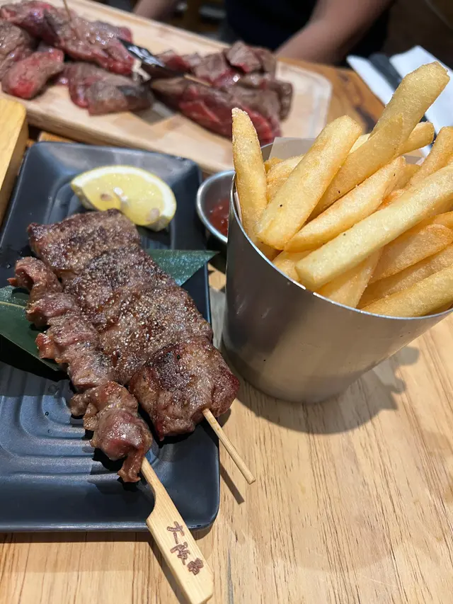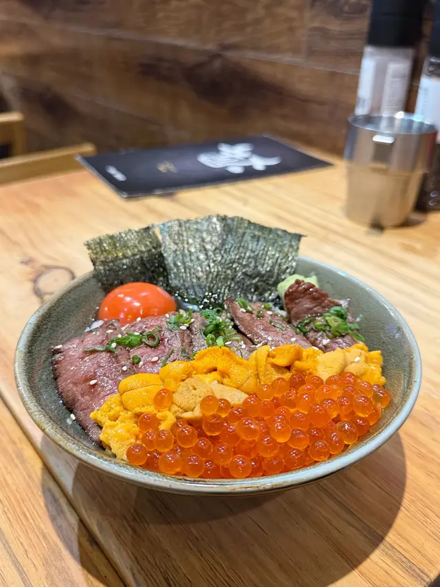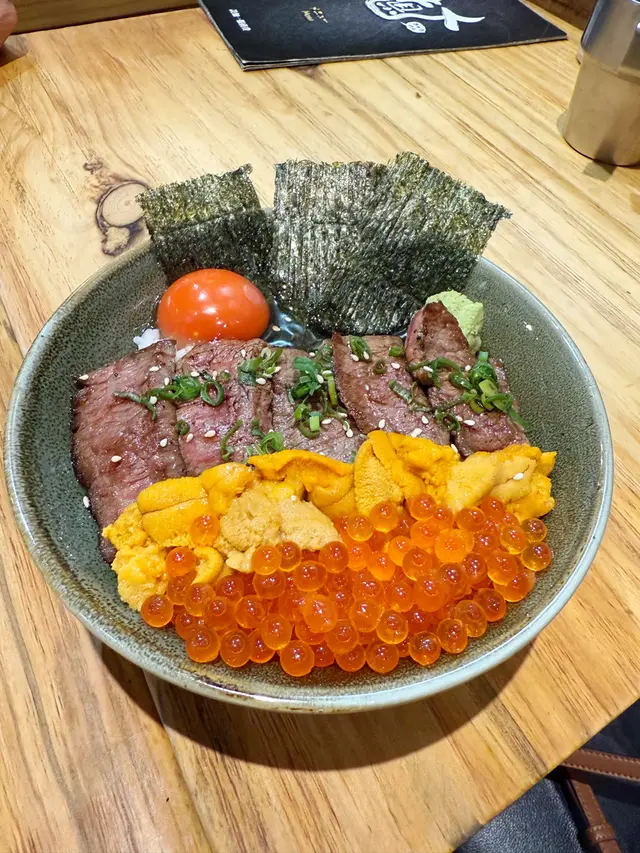 新收編了小貴婦,即享和街的寵物店為小寶寶添置用品,購物後順道這裏開餐。發覺牛県的餐牌甚為吸引,即推門內進。點了一份羽下牛扒300g $288,🎉🎉牛県是用上 USDA Prime 認證的濕式熟成牛排,肉質更嫩,肉香更濃,肉質有保證。羽下牛扒肥瘦均勻,呈現雪花紋,肉味油香平均。鐵板小爐夠玩味,生熟程度按個人喜好自由調節,配合特製調料醬汁,正到一個點 😂 😂👍👍👍升級五選三套餐 $32,有汽水、湯、沙律、薯條及白米飯可供選擇,選了面豉湯、薯條及汽水,加少少錢,成件事變得完美😍!健康的飲食餐單,必須有肉有菜,這客牛油果🥑蟹肉沙律🥗 $58,正好滿足菜蔬部分的需要。牛油果及蟹肉都是大愛,加上新鮮蔬菜及沙律汁,好味道就是這麼簡單👍👍牛縣燒肉海膽丼(燒肉)$188 ,一碗鋪滿了牛肉、海膽、三文魚子的丼飯,目測已經非常吸引。剛剛熟的牛肉,透著粉紅色的,肉味滿滿。海膽新鮮,加上三文魚籽,矜貴度即時提升,味道一流。炸九肚魚 $38,新鮮出爐,炸漿香脆,九肚魚鮮嫩滑溜,認真不錯的小食。…查看更多