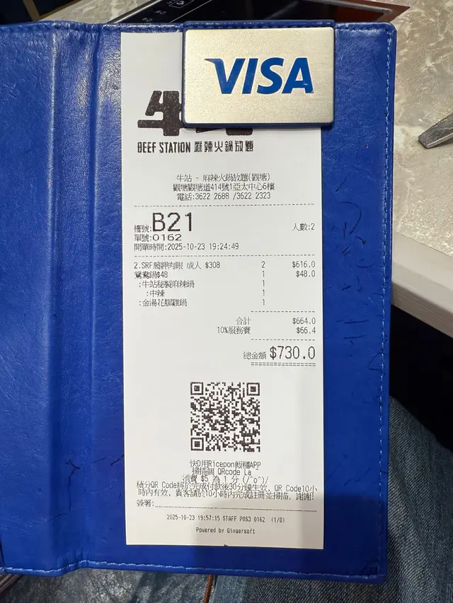 約了觀塘返工的朋友去牛站打邊爐,主打任食牛和海鮮,我們點了3號特上牛小排餐!好多款湯底都好吸引,選了鴛鴦鍋——麻辣湯配椰子雞湯!麻辣湯香辣過癮,選了bb辣,不會辣到嗆喉;椰子雞湯清甜,椰香淡淡地飄出來!特上牛小排油脂花得均勻,輕輕一涮,入口即化,滿嘴牛香;美國極黑和牛更軟嫩;安格斯牛板腱比較有咬勁,肉味濃;澳洲M5和牛平衡得好,嫩得來不失口感。我們一口氣加了兩輪,吃得超滿足。海鮮也很新鮮,值回票價之選,爽口鮑魚,蟶子王肥大肉厚,海蝦爽口彈牙,蠔和蜆都鮮甜,蘭花蚌脆脆的,不錯!火鍋配料我特別喜歡鴨血,滑溜溜的,吸滿麻辣湯汁;黑毛肚爽脆,花膠仔煮完軟糯黏嘴,感覺補充了好多膠原蛋白。必食乳鴿!沒想到火鍋店有乳鴿,還做得肉嫩,醃得夠味,我們忍不住encore了一隻。好欣賞牛站的自助區,超豐富,炸魚皮脆卜卜,直接吃或浸湯都正;小龍蝦麻辣入味,jap得很過癮。丸類、蔬菜、麵類選擇多,還有糖水、水果!飲品區簡直是飲料控天堂:清酒、梅酒、啤酒任斟,還有各式台式飲品、汽水、茶類,我試了白桃烏龍,清甜解膩。最後當然不能錯過Häagen-Dazs雪糕,為這頓飯畫上完美句號,真的捧著肚子離開!…查看更多