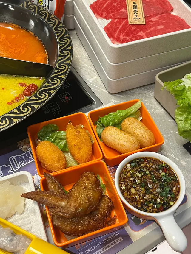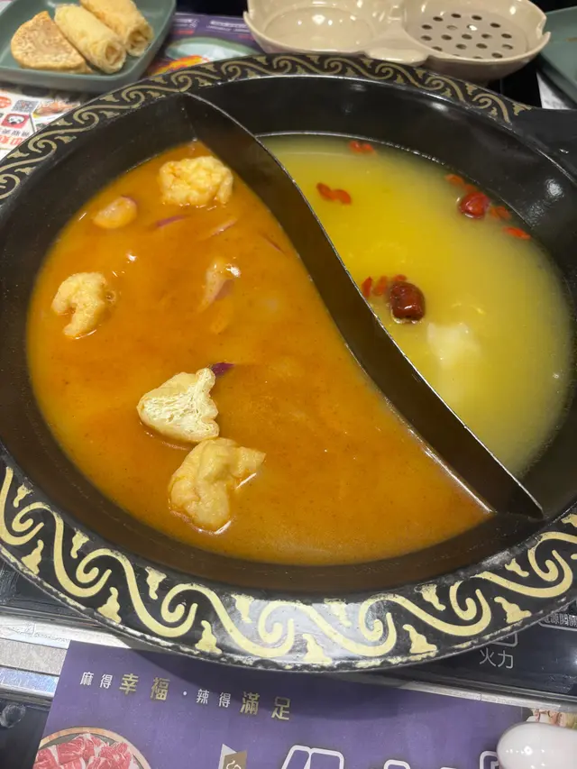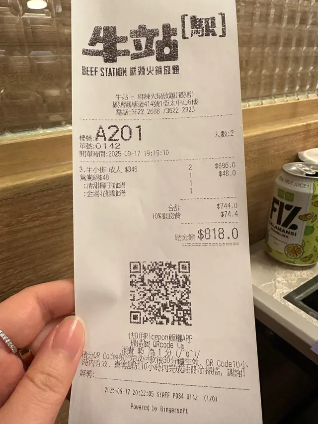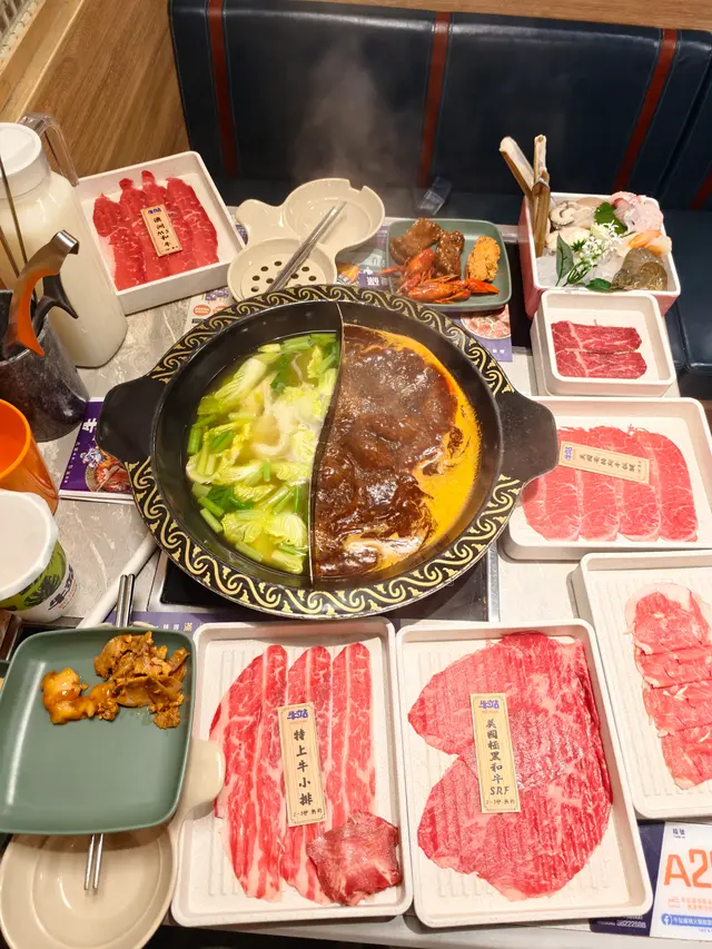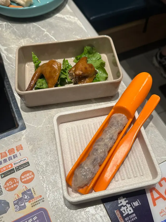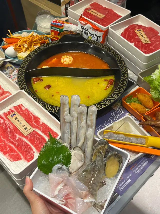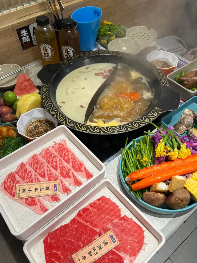 約了觀塘返工的朋友去牛站打邊爐,主打任食牛和海鮮,我們點了3號特上牛小排餐!好多款湯底都好吸引,選了鴛鴦鍋——麻辣湯配椰子雞湯!麻辣湯香辣過癮,選了bb辣,不會辣到嗆喉;椰子雞湯清甜,椰香淡淡地飄出來!特上牛小排油脂花得均勻,輕輕一涮,入口即化,滿嘴牛香;美國極黑和牛更軟嫩;安格斯牛板腱比較有咬勁,肉味濃;澳洲M5和牛平衡得好,嫩得來不失口感。我們一口氣加了兩輪,吃得超滿足。海鮮也很新鮮,值回票價之選,爽口鮑魚,蟶子王肥大肉厚,海蝦爽口彈牙,蠔和蜆都鮮甜,蘭花蚌脆脆的,不錯!火鍋配料我特別喜歡鴨血,滑溜溜的,吸滿麻辣湯汁;黑毛肚爽脆,花膠仔煮完軟糯黏嘴,感覺補充了好多膠原蛋白。必食乳鴿!沒想到火鍋店有乳鴿,還做得肉嫩,醃得夠味,我們忍不住encore了一隻。好欣賞牛站的自助區,超豐富,炸魚皮脆卜卜,直接吃或浸湯都正;小龍蝦麻辣入味,jap得很過癮。丸類、蔬菜、麵類選擇多,還有糖水、水果!飲品區簡直是飲料控天堂:清酒、梅酒、啤酒任斟,還有各式台式飲品、汽水、茶類,我試了白桃烏龍,清甜解膩。最後當然不能錯過Häagen-Dazs雪糕,為這頓飯畫上完美句號,真的捧著肚子離開!…查看更多