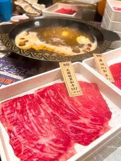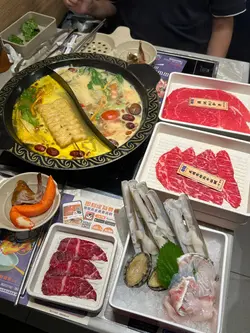 火鍋放題店♨️牛站[駅]麻辣火鍋放題,觀塘分店位於APM隔籬,交通方便🚇,深受街坊喜愛,閒日晚市都爆場💥!🌟特上牛小排餐 $348/位最高級別嘅放題Set,設閒日、早鳥及宵夜時段優惠,更加抵食!🦞龍蝦頭鍋能突顯食材鮮味嘅湯底,清香美味!加埋其他海鮮一齊煲,愈食愈鮮!🥩特上牛小排|澳洲M5和牛特上Set主打嘅兩款肉品!牛小排有油香,食落夠多汁!澳洲和牛大大片,牛味香郁!🪸海鮮大大隻爽甜嘅蟶子皇、彈牙嘅鮮鮑魚、美味嘅竹笙釀蝦滑等,都係特上Set先有得任食!草蝦、象拔蚌、蘭花蚌、沙白等海鮮同樣精彩!🕊️燒乳鴿皇集團嘅皇牌熟食Product,充滿光澤,一咬即爆出令人愉悅嘅油香,必需瘋狂Encore!🍻自助區生啤、清酒、梅酒等無限添飲!放題甜品更吸引,無限添食名廠Haagen-Dazs雪糕!復刻版嘅巨星雪條同埋自家甜品軟心芝士布甸,都值得一試!…查看更多