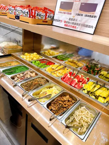 好多肉丸、配料同蔬菜任攞,連蟹棒、帶子都有。熟食都有得出去攞,有飯有餸,仲有鹽酥雞𠻹