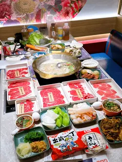 今次揀SRF肩胛肉眼套餐,有牛筋、美國豬梅肉片、巴西牛脷托、美國牛肩胛片、澳洲和牛五花趾、美國安格斯牛板腱、SRF美國極黑和牛片同羊肉片可以任食