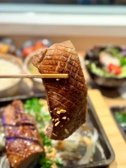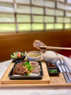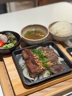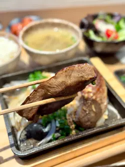|三重牛舌御重盒完全係牛舌控嘅夢幻組合‼️ 御重盒中同時集結牛舌芯、牛舌尖同牛舌筋 層次分明又各有特色🤭 牛舌芯厚切炙燒後外層微焦 油脂感重 入口柔軟得嚟 有啲彈牙🤤 牛舌尖相對薄切少少 口感軟腍🙂↕️ 牛舌筋比較偏向Q彈膠質口感 不過有幾舊偏韌🤏🏻|極・厚重量炙燒牛舌芯主打想食牛舌芯嘅話 可以選擇呢款🤭 足足有兩條咁多!呢隻牛舌芯應該同上面御重盒一樣 不過呢條入面肉質比較粉嫩啲 但食落一樣咁多汁🥹 不過始終都係成條上嘅關係 有啲部位係比較韌 但都正常嘅~ 腍嘅部份依然佔多啲😆|頂級安格斯牛板腱佐牛舌尖唔想淨係食牛舌嘅話 可以選擇呢款配搭🙌🏻 牛板腱肉味香濃紮實 有啲嚼勁 油花細緻😍 牛舌尖一樣口感軟嫩 再點調味料 層次更豐富✨ 個人最推薦解膩柚子醬油‼️|小食:汁煮大根,牛舌筋小食大根食落清甜好入味~ 如果嗌咗三重牛舌御重盒 就建議唔使再嗌牛舌筋🫢 整體都有啲咬口 同埋有少少偏韌🤏🏻主食 +$18 可以升級套餐 (野菜沙律 + 洋蔥牛舌湯),+$20可以配日本梳打🥤…查看更多