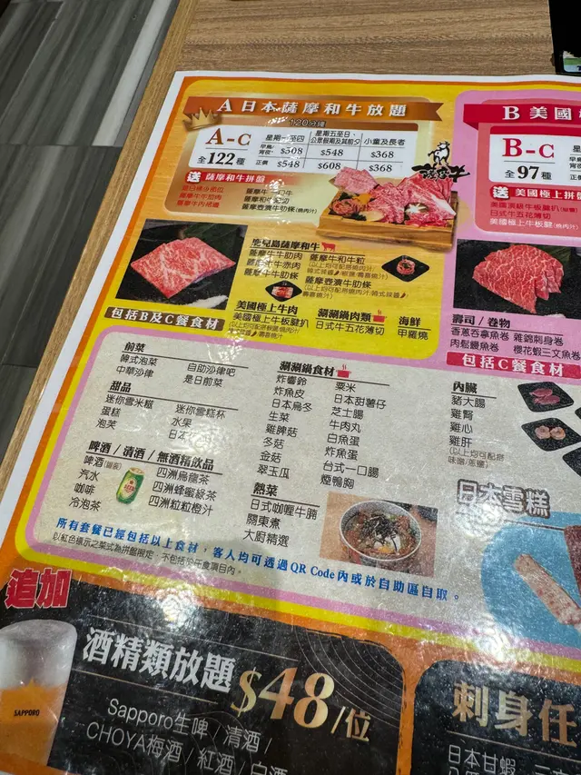 市面有好多間唔同嘅燒肉、打邊爐放題,但系能夠做到一台同時間燒肉加涮涮鍋嘅鋪頭就唔多,而且食物絕對有質素保證!日本薩摩和牛放題一開始先會送上一個頭盤,每款牛都各有千秋,最令我驚喜嘅絕對系和牛粒!即使燒耐咗肉質仲系好腍,完全唔會有筋👍🏼而用作涮涮鍋嘅薩摩牛牛肩胛薄切更系我嘅至愛!放入味道濃郁嘅壽喜燒鍋,數秒嘅時間再沾蛋液一齊食,入口即溶嘅口感加埋壽喜燒同蛋液嘅搭配,絕對系頂呱呱🥰呢個餐仲會跟少量嘅海鮮,而甲羅燒系必點嘅食物之一!初初都有啲擔心放題甲羅燒嘅質素,但製作好之後味道一流,仲比得上出面餐廳單點!我同朋友都encore咗三輪😆絕對值回票價!另外鐘意食鮑魚嘅朋友亦都唔好錯過,就算我呢啲唔識燒嘅人,都一樣可以燒得好好食一啲都唔韌🤤另外自助區有唔少火鍋配料拎,而用QR code揀選火鍋配料仲有驚喜出現😍竟然系有牛骨髓呀!香港嘅唰唰鍋絕對好少見有牛骨碎揀,所以都真系好開心😆新鮮程度亦令人好滿意👏食到最後當然唔少得甜品啦!但若然對甜品有要求嘅就唔好太大期望,因為甜品種類冇一般放題多,但勝在過到口癮,又有水果揀,但系單單食物嘅質素已經完勝👍🏼…查看更多