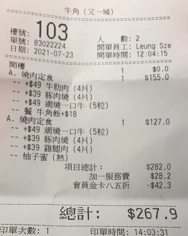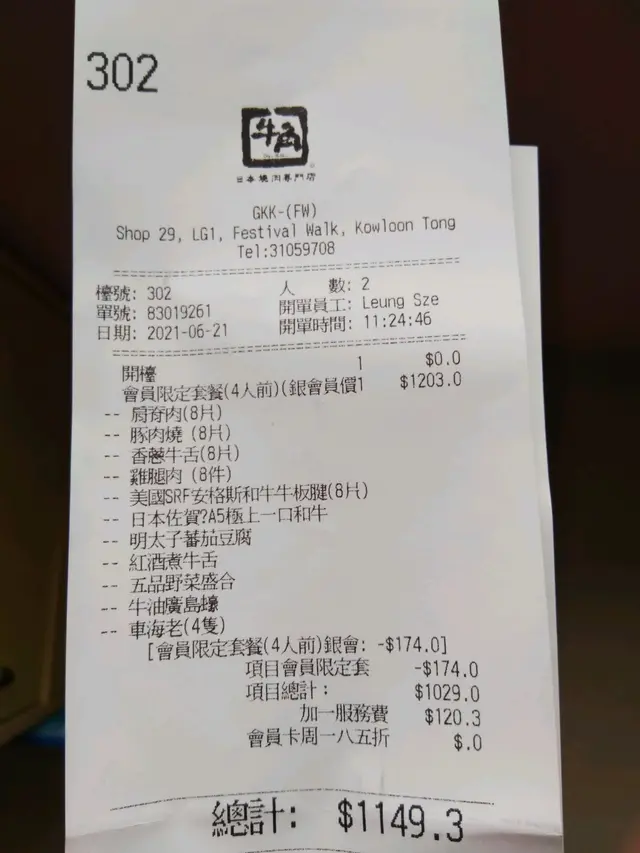 牛角日本燒肉專門店 (又一城)條款及細則:
