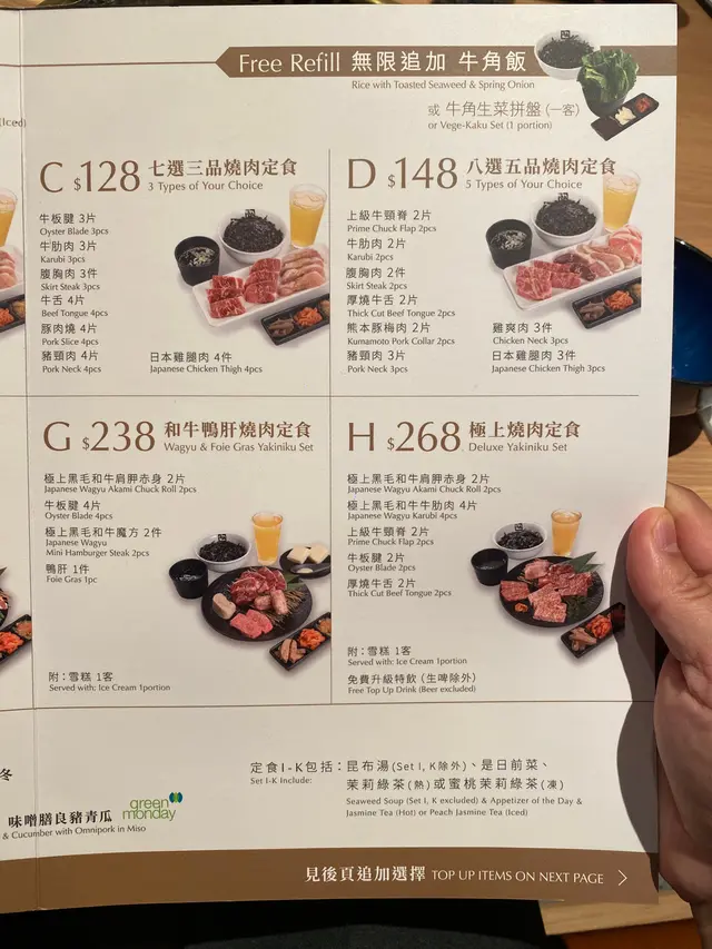 ⭐ 評分:★★★★☆ (4.2/5)---🍱 燒肉定食A ($88) ✅ 內容: - 三品燒肉: - 豚肉燒(4片):油脂香濃,建議烤至微焦。 - 日本雞腿肉(2件):嫩滑多汁,燒皮後更香。 - 雞爽肉(4件):即雞軟骨部位,脆口有嚼勁。 - 附餐:昆布湯 + 是日前菜。 💡 性價比: → 海港城地段$88有齊肉、湯、菜,比單點划算! → 肉量適合女生或輕食者,男生建議加配。 ---🦀 加配|松葉蟹膏甲羅燒 ($58) ✅ 驚喜位:蟹膏混入蟹肉碎和鵪鶉蛋,烤後鮮味爆發,配飯或直接吃都超正! ⚠️ 注意:需自己控制火候,避免烤焦。 ---🔥 燒肉技巧 1. 豚肉:兩面烤至金黃,逼出油脂香。 2. 雞腿肉:皮朝下先烤,鎖住肉汁。 3. 甲羅燒:拌勻後用小火慢烤,冒泡即可。 ---🏙️ 環境 & 服務 - 海景座位:部分枱可望維港,但需預約或早到。 - 自助燒烤:電爐火力穩定,不用怕燶肉。 - 限時優惠:午市定食最抵,晚市價格較高。 ---📌 總結 「$88食到日本燒肉定食,仲想點?」 👍 優點: - 定食組合均衡,甲羅燒追加價合理。 - 海港城難得免加一,遊客/逛街人士恩物。 必試組合: 1. 定食A + 甲羅燒($146全包) #海港城美食 #牛角燒肉 #平價定食 #甲羅燒 ---💡 小貼士 1. 預約攻略:OpenRice訂座免排隊,窗邊位備註「海景」。 2. 醬料搭配:試試岩鹽,提鮮不膩。 「$58甲羅燒蟹膏滿瀉!」…查看更多