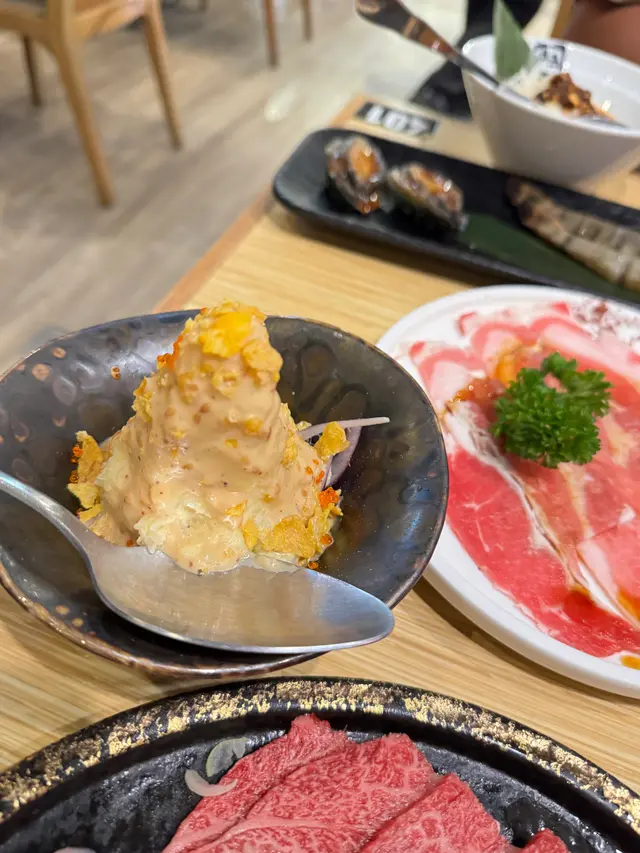 今天和家人來到牛角聚餐,V City 這間分店並不是任食,於是我們便點了燒肉盛合,以及單點不同的牛肉部位、雞肉、豬肉和海鮮,另外亦點了兩款石鍋湯。燒肉盛合:拼盤包括了九州極上黑毛和牛、牛舌、牛肉丸,以及不同的牛肉部位、雞肉和豬扒等等,黑毛和牛雖然充滿著濃濃的牛肉味,但是肉質不算太嫩滑,牛舌爽口彈牙,牛肉丸味道一般,雞肉和豬扒正常味道,至於其他牛肉部位的口感有點韌。北海道富良野和牛羽下肉:今次單點的牛肉當中,最美味是這款,肉質柔軟嫩滑,入口即化,而且充滿著濃濃的牛肉味,北海道的和牛真的美味一點。北海道富良野和牛肩胛肉:肩胛肉對比羽下肉,質感稍微有嚼勁一點,牛肉味都是很濃郁的,不過個人更喜歡羽下肉多一些。燒鰻魚:鰻魚的質感柔軟嫩滑,鮮美多汁,美中不足是醬汁比較少,如果多醬一點會更美味。帶子和帆立貝:兩款都很鮮甜美味,爽口彈牙,味道都相當不錯。石鍋海鮮北海道湯咖哩:我們另外加了烏冬,咖哩很惹味濃郁,微微香辣可口,海鮮的份量都很充足,烏冬煙韌彈牙,味道相當有驚喜。極上黑毛和牛雲吞豆乳石鍋:餐廳可能忘記加鹽,豆乳淡而無味,和清水一樣沒有任何味道,雲吞的味道亦很一般,大家千萬不要點這個石鍋。價錢方面,全部食物加起來總共是 $1861,餐廳設有加一服務費,最後八人總共$2048。總結來說,今次的食物味道都算美味,不過單點的價錢真的有點昂貴,下次我應該會選擇任食的牛角餐廳,可以盡情地試更多不同的牛肉部位。…查看更多