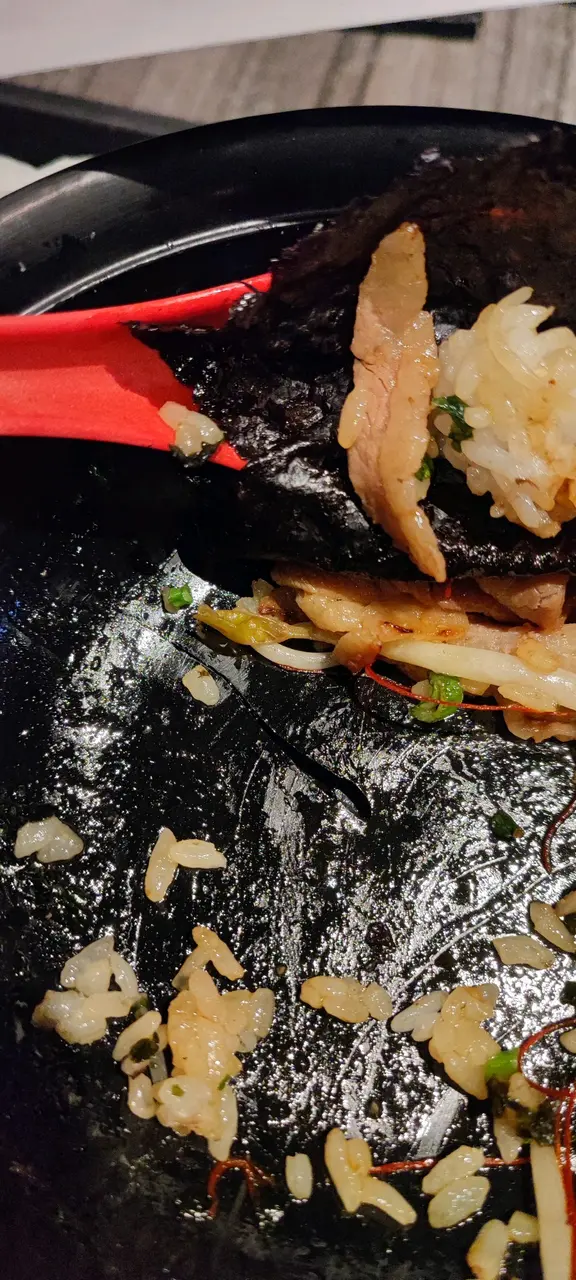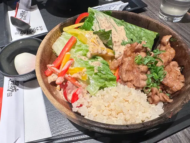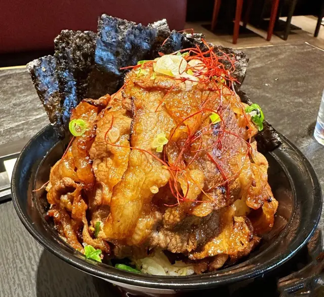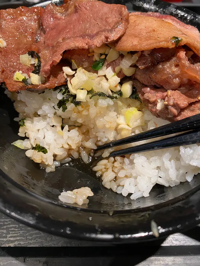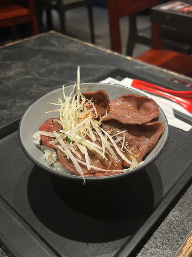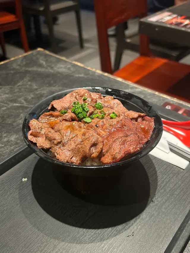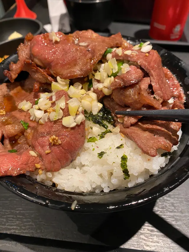 It was pretty late for a proper lunch but we were so starved that just wanted to eat anything we saw. We went in this Japanese roasted meat restaurant for a quick grab. Staff arranged seats efficiently while orders are made via QR code. Menu served variety meat type and cuts, appreciated having kids, lighter or vegetarian options. We ordered the salted roasted beef rice and assorted rice set. Salted roasted beef was in thin cut. Lightly charred. Half lean and half tendon, but soft and tender. Savoury but not overly salted. Lightly dressed topped with diced garlic. Rice was covered by seasoned toasted seaweed which gave an umami fishy flavour. Paired well with the meat. Nevertheless, the sauce was actually sitting at the bottom of the bowl which means the rice at the bottom was soggy and very salty. Bowl wasn't as deep as it looked which kind of letting down by the portion size. Assorted rice covered most of the beef cuts. All were thin cuts and cooked perfectly except the ox tongue was a bit tough. Right amount of portion while imbalance dressed. One side was soaking sauce while the other side has none. Side was a Chinese seaweed salad. Nothing special. Chewy and cold. Can hardly go wrong. We additionally ordered chicken cartilage as a nibble. Love the crunch and promising golden yellow colour. Lightly salted. Pretty big portion that kept us eating. Overall, not bad. 查看更多