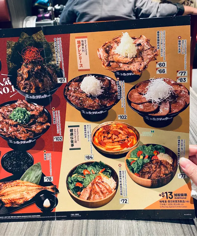 入到東涌, 竟然食咗牛角, 但食物味道有保證 食物 : 牛角次男坊丼 $97 ~ 打開餐牌, 立即見到這碗巨形丼飯, 而且還是NO.1人氣, 無理由唔試下, 丼飯嚟到真係如相片有很多燒肉, 燒肉味道好好唔好韌, 不經不覺食晒成碗丼飯, 好飽好滿足 飲品 : 加$13 配有味噌湯, 前菜及汽水, 味噌湯味道普普通通 環境 : 店內環境舒服乾淨, 但有很多一家大小的遊客, 比較嘈 服務 : 職員有禮貌 價錢 : HK$110查看更多