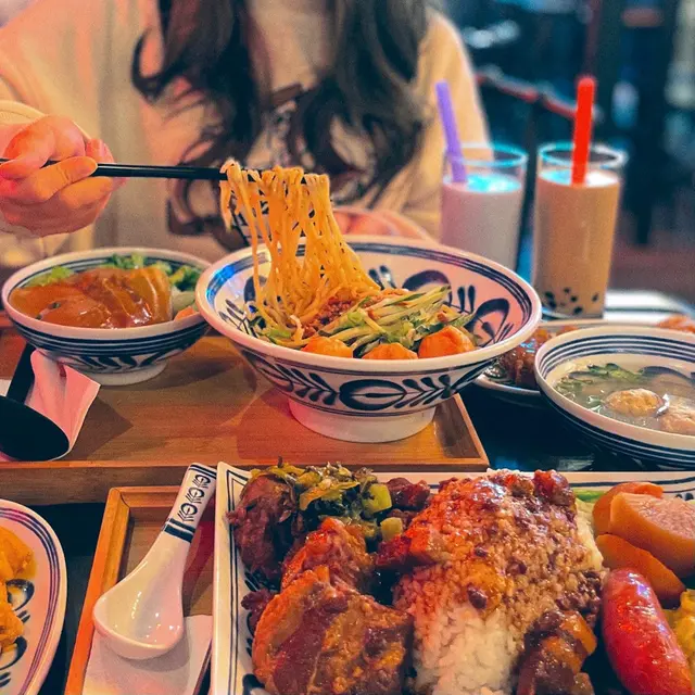 同朋友來食,店舖裝修幾特別珍珠奶茶,好好飲,但珍珠有d 硬牛肉面,牛肉好大塊👍滷肉飯d 滷水汁唔夠多,味道還可以😂台式腸好好食,一咬喺口入邊爆汁👍唔知係咪太晏,無咩生意,成晚都我地一台客😂but服務都好好上菜速度就一般,好似得一個服務員所以有d 慢(可能我當然太肚餓)題外話個服務員超靚仔😂查看更多