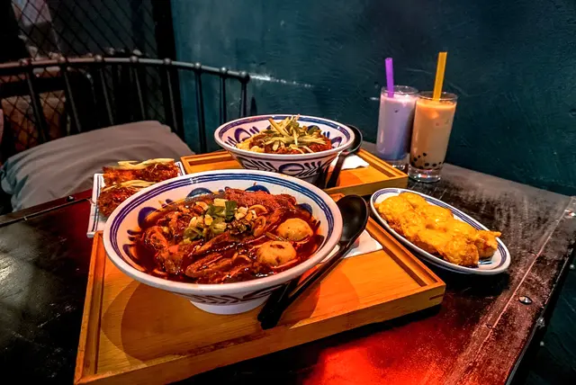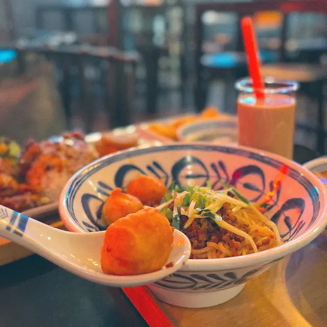 位置都真係比較隱蔽 唔特登行入去都唔會見到食台灣嘢但呢個style嘅裝修都真係幾少見😂🤍牛魔王($75) | Rating:8/10+$6轉咗麻辣湯底 湯頭偏向紅燒牛肉麵嘅味就唔係藥材味嗰啲 飲落幾濃郁 重口味人士會鍾意!配料有牛腩 牛肚 牛𦟌 貢丸份量慷慨 所有配料都不錯🤍紅燒牛肉拌麵($68) | Rating: 7/10同樣+$6轉麻辣味 個汁其實幾夠麻同辣 好香花椒油味好少喺香港食到台式拌麵嘅麻係會痺到個口了份量同樣大方 牛肉有3-4嚿 有一嚿牛筋兩樣都煮得軟稔入味扣分位喺醬汁可以再比多少少 同麵嘅口感唔夠彈牙🤧🤍木魚炸豆腐($35) | Rating: 8.3/10本身見到個名以為係普通嘅炸豆腐 上面鋪一堆木魚碎點知佢係用木魚碎包住嚿豆腐一齊攞去炸木魚碎炸出鹹香味 外面酥脆 內裏豆腐嫩滑再淋上甜酸醬同青瓜絲解膩 推薦!🤍火爆芝士鹽酥雞($36) | Rating: 6/10見出面普遍都係賣普通鹽酥雞 呢個幾特別芝士都真係幾重手幾火爆 I like😂但…鹽酥雞肉質比較鞋 冇乜肉汁做唔到酥脆嘅口感 如果改做將芝士醬放埋一邊 唔好焗淋啲雞可能會好啲🤧/🤍珍珠奶茶/香芋奶茶(跟餐+$10) | Rating: 7/10查看更多