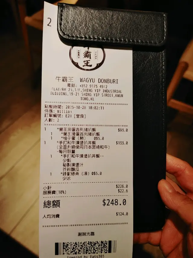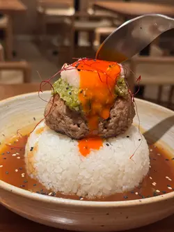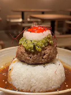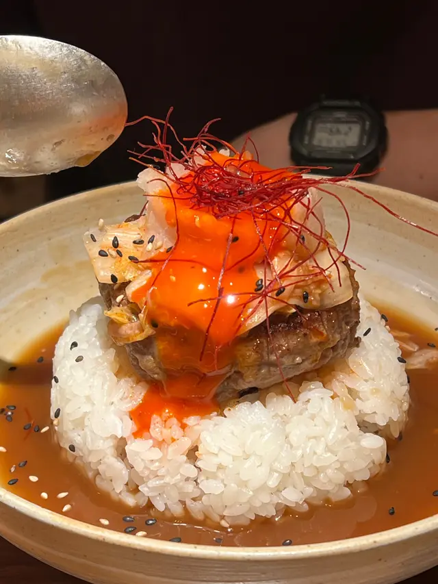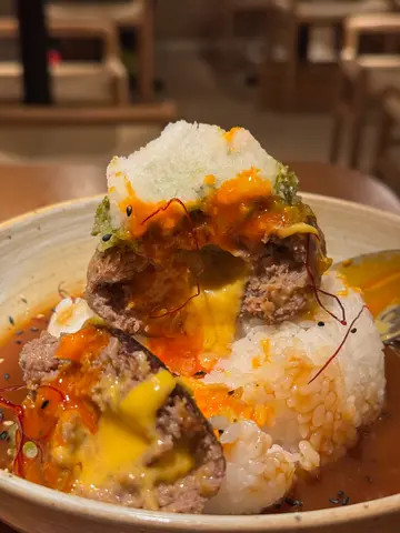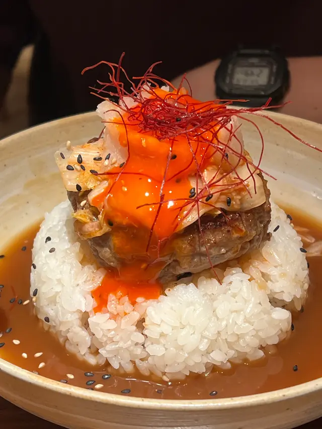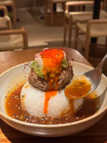 小店裝潢簡約, 冷氣充足, 唯電訊網絡接收差。All day menu 選擇不少, 首次光顧選了其限量供應的招牌手打和牛漢堡蘭王蛋飯。1) 招牌手打和牛漢堡蘭王蛋飯 $128 (配日式咖喱汁和日式泡菜)2) 雞皮餃子 (2件) $183) 蜂蜜綠茶 (凍) $5招牌手打和牛漢堡蘭王蛋飯可自選醬汁和配料, 我選了日式咖喱汁和日式泡菜。丼飯由飯作基底, 以層層疊的方式堆砌漢堡, 日式泡菜和蘭王蛋, 賣相吸睛。嚐一口咖喱汁, 咖喱香辣惹味, 質感濃稠, 雖然要求了多汁, 還是覺得不夠。飯的份量不少, 甚有黏性。和牛漢堡牛味濃郁, 既鬆軟又juicy, 可口美味。日式泡菜配上蘿蔔蓉和蘭王蛋汁同吃, 層次豐富。追加了雞皮餃子, 雞皮餃子煎炸得香口, 外表微脆有彈性, 肉質juicy。蜂蜜綠茶味道不俗, 入口透心涼。由於選了招牌手打和牛漢堡蘭王蛋飯 (霸王餐), 吃畢碗底會有驚喜, 有機會贏得免費飲品 / 小食 / 半價優惠 / $40現金券 / $1漢堡扒 / $1小食。雖然最後獲得 $40 現金券 ($8 x 5張), 但要消費每滿$88才可使用一張, 運氣實屬一般。…查看更多