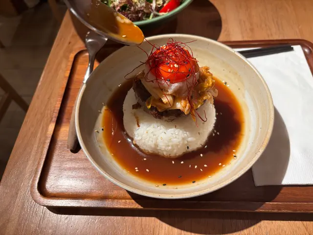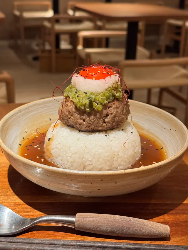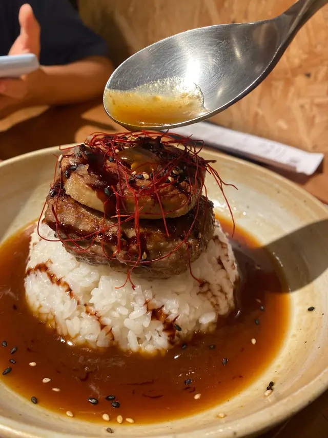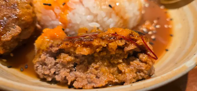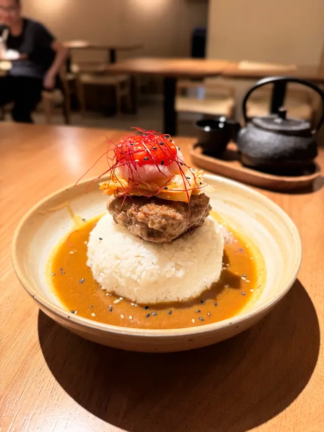 招牌手打和牛漢堡蘭王蛋飯(配日式咖喱汁和日式泡菜)$128