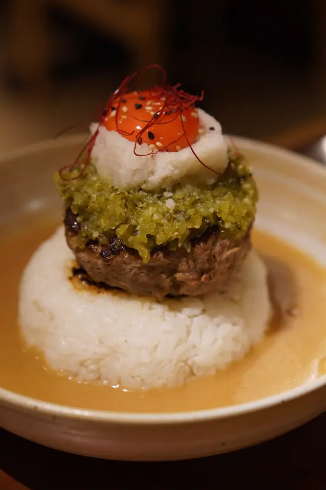 觀塘出名多隱世小店放工同朋友來到成業街的樓上小店食一個人氣高質丼飯呢間係主打自家手打的漢堡扒丼飯專門店漢堡扒是用澳洲和牛同美國安格斯牛手打製成今次期間限定 升級做日本宮崎和牛除左兩款王牌漢堡扒飯另有仲幾款價錢更平民既熟食丼飯//手打和牛漢堡扒丼飯 $128//必點招牌菜基本上見到每枱都至少叫了一客手打和牛漢堡扒 入口牛味濃 滿滿的肉汁油脂分布均勻牛肉的香氣也非常突出漢堡扒上面有一隻蘭王蛋混合埋珍珠米一起吃 蛋味香濃醬汁方面我地選擇漢堡汁味道濃厚卻不搶味 同牛肉完美融合另外配菜選擇左日式泡菜無論醬汁同配菜都配合牛味濃郁的漢堡扒相當夾混合埋已滿滿蛋香的珍珠米一起吃每一口都能感受到米飯的鮮甜同牛肉的豐富口感//雞皮餃子 $58//一客5隻 餃子外層以雞皮取代傳統麵皮煎炸至金黃酥脆入口就有陣雞皮特有的油香內餡飽滿 口感嫩滑且多汁同外層的脆皮形成強烈對比完全做到外脆內嫩的口感//咖哩吉列豬扒飯 $93//咖喱醬呈現金黃色 香氣濃郁帶有微微洋蔥的自然甜味入口甜而不辣吉列豬扒選用厚切豬肉外層裹上麵包糠炸至金黃肉汁仍能鎖住 口感完全不乾柴搭配珍珠米飯 盡吸咖喱醬汁每一口都令人滿足…查看更多