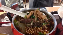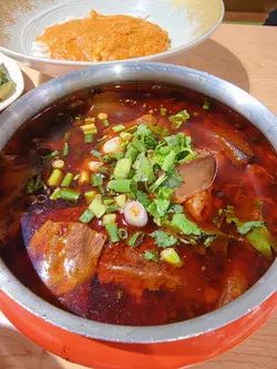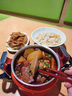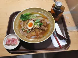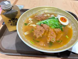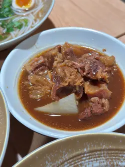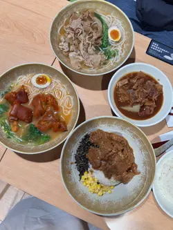老友約我行Aeon,順道去位於紅磡黃埔天地第五及六期Aeon Style 地庫一樓WP08號舖的<牛嚮度拌麵>食午餐,食街形式經營,先購票後取餐,自己找座位入座,食完餐後,自己清理餐具。我哋點咗:🔅嫩滑炸豬扒飯 $54:豬扒炸得皮脆肉嫩,配菜有芝麻紫菜粟米,送飯一流。🔅慢煮牛舌 + 手工去皮炸雞髀扒(牛骨湯刀削麵)套餐$72,送A5和牛慕絲兩件(甜品)+ 黃金大麥茶:牛骨湯底清甜,牛舌有咬口好味,雞髀扒嫩滑,刀削麵好食;慕絲滑溜好味,大麥茶好飲。🔅牛筋、牛腩、汁煮肥牛(牛骨湯手工麵)套餐 $78,送灼生菜 + 黃金大麥茶:牛筋牛腩軟腍入味,肥牛鮮甜,手工麵好食。…查看更多