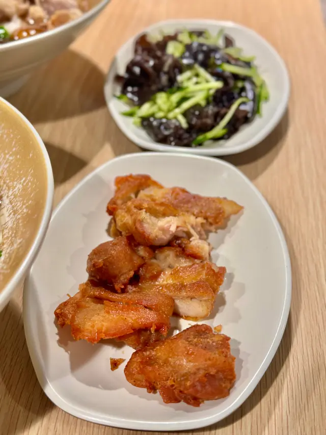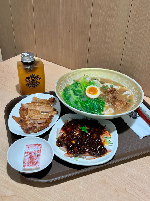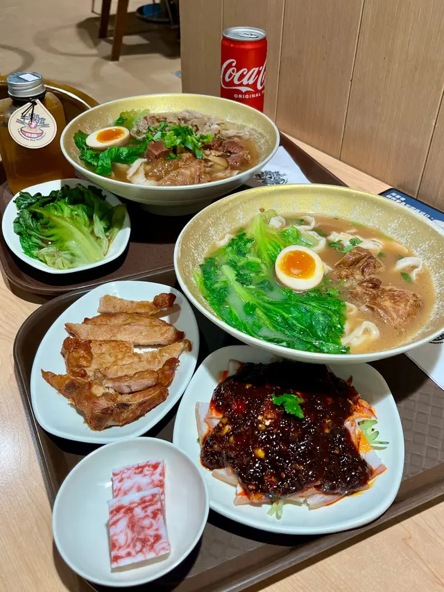 試咗最強拼最強套餐($78/份),真係好抵食又滿足!我哋叫咗兩個套餐,都係配牛骨湯刀削麵,湯底濃郁🤍 套餐 1:牛筋、牛筋腩、汁煮肥牛湯麵牛筋同牛筋腩炆得好入味又軟腍,肥牛都好嫩滑!份量超足,食到啖啖肉!小食-灼生菜🥬飲品-可樂🤍 套餐 2:嫩滑炸豬扒、香濃豬軟骨湯麵 炸豬扒香口,豬軟骨炆到一夾就開,骨膠原滿滿!小食-甜品 A5和牛慕絲(2件),口感都幾特別😆 係士多啤梨味,飲品-黃金大麥茶,清爽解膩👍🤍 另叫小食蒜泥白肉($32)白肉切得薄身,淋上滿滿嘅秘製辣油蒜泥!辣度🌶️同麻香味十足,撈麵食超正!…查看更多
