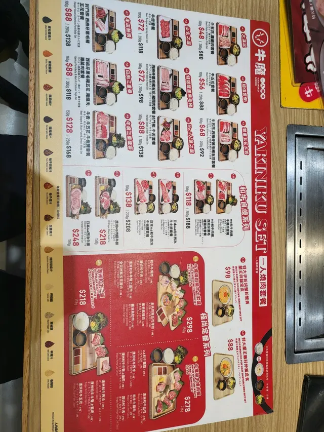 餐廳:牛魔一人燒肉地點:旺角豉油街菜式:日式燒肉餐牌:一人燒肉套餐一共有15款,分100/150/200/250/300g,價錢唔同,包御飯或者迷你烏冬,牛骨湯同沙律。御飯或者迷你烏冬都可以升級,可以加錢追加燒肉/小食/飲品等。落單用QR code。封門柳牛舌套餐 200g $138 另加一封門柳兩大條,切得夠厚身,原來都唔難燒熟,肉質夠瘦,不過都算嫩,食落好有牛味。牛舌有八片,夠厚切,好有咬口。封門柳西班牙黑毛豬五花套餐 200g $138 另加一配西班牙黑毛豬五花就有四大片,肥瘦相間,口感爽脆,唔算太肥。好欣賞呢度醬汁好flexible,可以從12款醬汁當中自選3款,好貼心。呢度肉類本身冇加醬汁,所以自選醬汁好重要。每款醬汁都好有特色,任君選擇。今日試左黑椒鹽醬,黑松露燒汁,韓國辣汁,焙煎胡麻汁,檸檬鹽。跟餐沙律係簡單沙律雜菜加粟米粒沙律,醬汁係胡麻醬。跟餐牛骨湯有豆腐粒同蔥花,唔會太鹹。日式冷麵烏冬 加$28 另加一冷烏冬有青瓜絲,紅蘿蔔絲,秋葵,半隻熟蛋,伴有檸檬片份量唔多,加有好多冰粒降溫,消暑之選。手拆純蟹粉蟹黃蘭王拌大光麵/烏冬 加$78 另加一手拆純蟹粉蟹黃蘭王拌烏冬原來分量好多,烏冬用木兜上,中間一隻橙紅色大大蘭王!手拆純蟹粉蟹黃另上,係熱辣辣,蟹粉蟹黃撈有蟹肉加蔥花。我成兜烏冬倒落去撈,味道係剛好,口感滑溜而唔會過鹹帶適量蟹味。牛魔黑松露和牛他他 $78 另加一牛魔黑松露和牛他他係好多新鮮蘋果切粒面頭加上唔少生和牛條,中間一隻鵪鶉蛋黃,伴有黑松露醬同蔥花。黑松露醬味道適中,撈埋所有配料食入口爽脆滑溜都有,味道清新中帶和牛油香。特大虎蝦 $28 另加一特大虎蝦真係幾大隻,燒蝦蝦殼極香 蝦頭有膏,蝦肉爽口又鮮甜。伴有檸檬角。菠蘿特飲,巨峰特飲 各加$15特飲有粒粒椰果可以咬,而味道唔會過甜,夠解渴。今餐所有肉類海鮮都好正,食完唔會成頭成身油烟味。每個座位都提供較剪方便自己將燒肉剪細入口。餐廳裝修乾净衛生。…查看更多